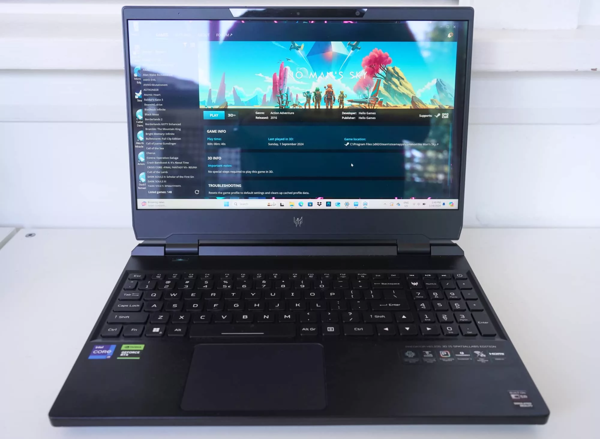 Acer is definitely adding a different experience here, though it’s one that can also be quite buggy. In No Man’s Sky, for instance, the 3D mode crashed several times and definitely experienced obvious slowdowns. What appears to be happening is needing to render two sets of visuals twice — two Full HD gaming experiences on top of each other from a 4K render — and that may not play as nicely as you expect, particularly when on battery.