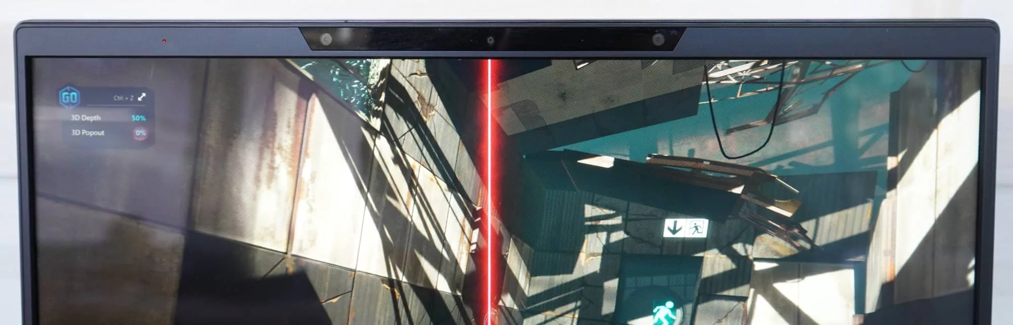 Two cameras can be found up top, allowing the webcam setup to work in stereo, which is designed to play nicely with the screen.