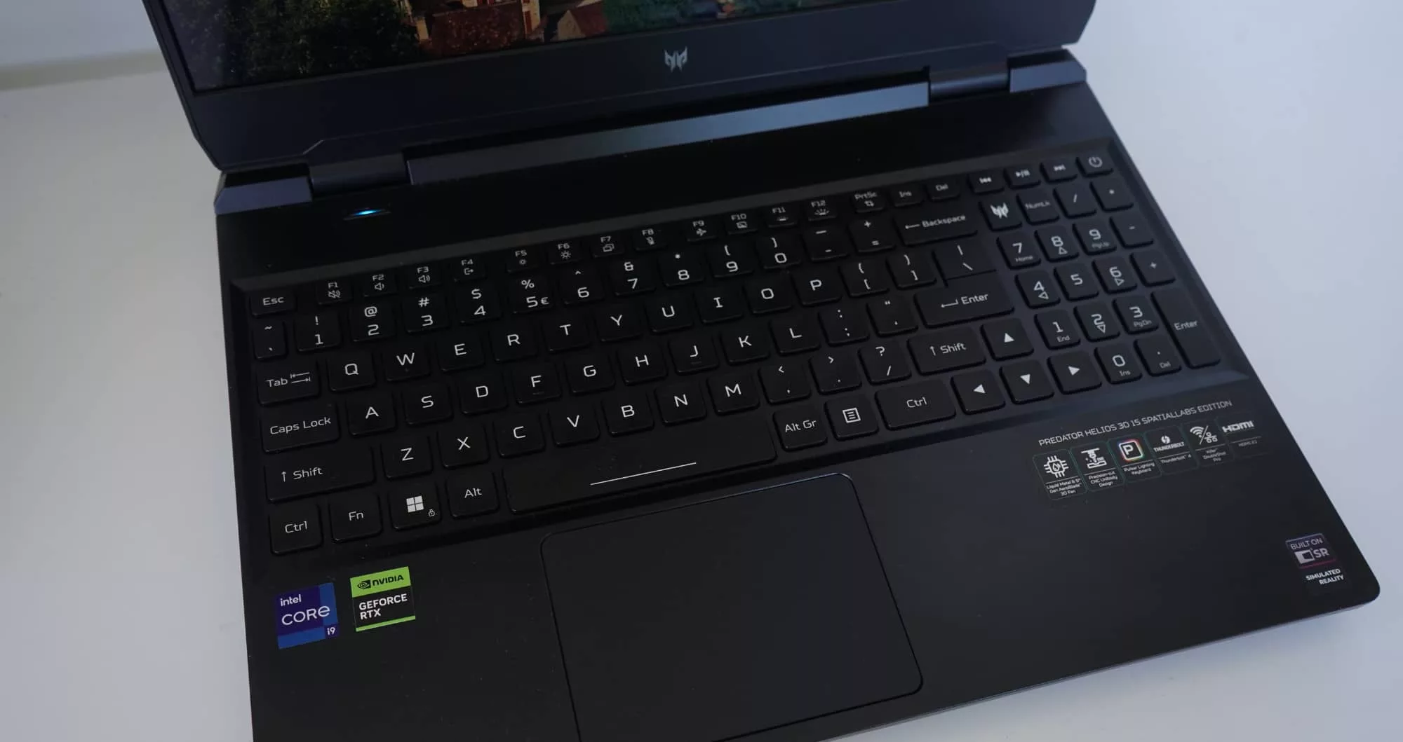 Powering on with a loud whoosh sound and lighting up blue randomly under each key, the Predator Helios 3D 15 switches on with gusto. Unfortunately, it also fires up the fan almost immediately after which almost reveals a gust, particularly by sound.