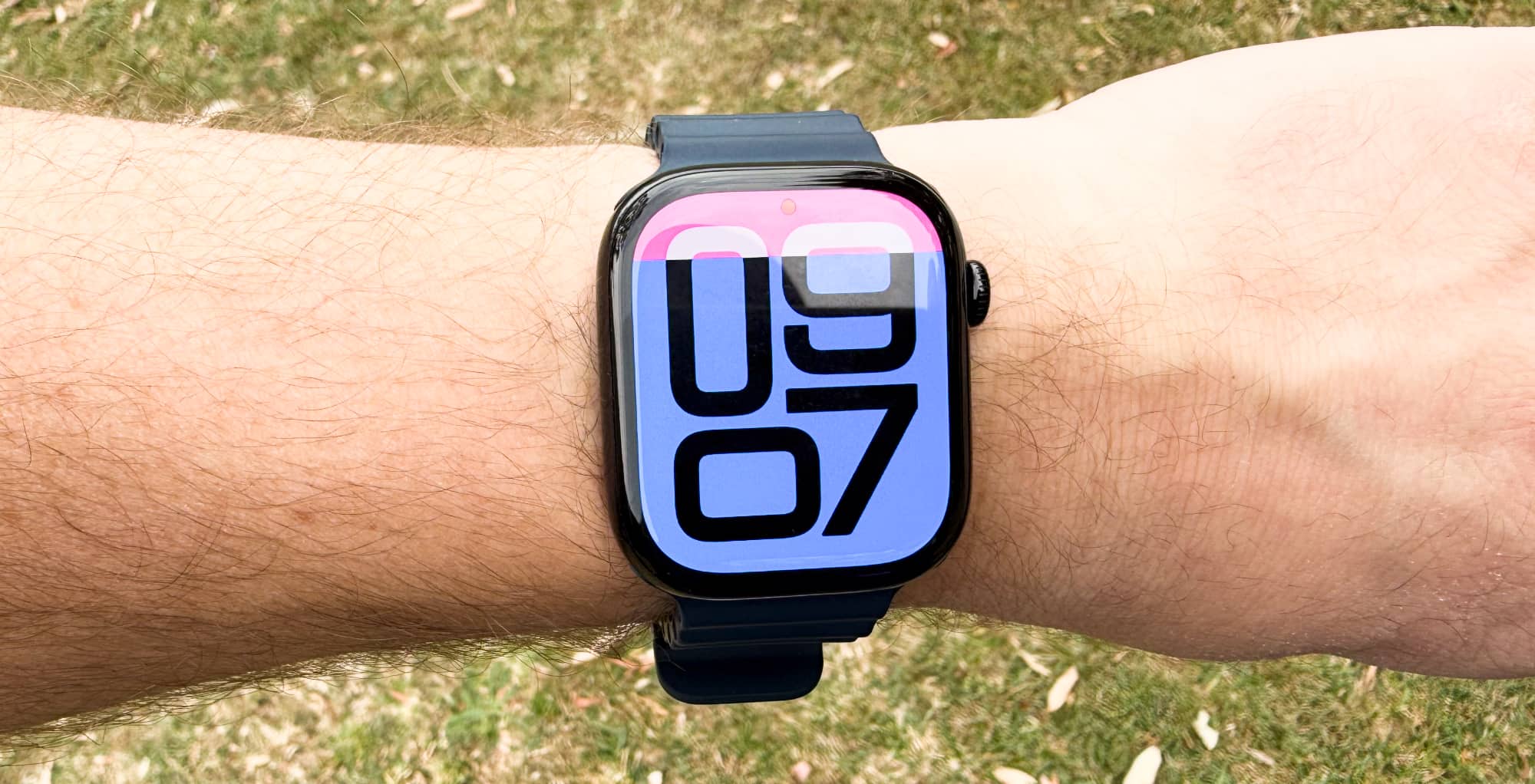 It’s bigger, even if it’s not quite as large as the 49mm Apple Watch Ultra screen. However, because the edges curve over the sides, it manages to look just as large, missing the look of the obvious bezel its bigger brother has. It even manages to look bigger than the 45mm Series 9 before it, even if there’s a minuscule difference of 1mm.