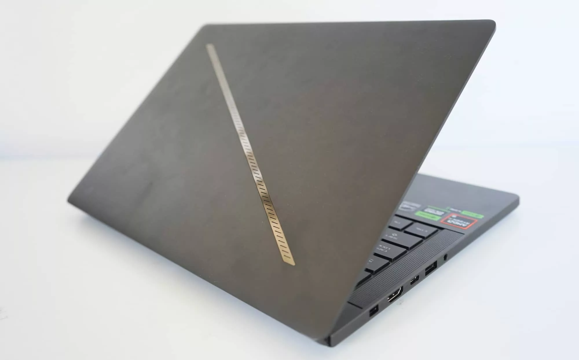 One other feature is a bit of an extra and sits on the outside of the laptop: a strip of tiny LEDs dotted in a diagonal line of a slash that can show light-up patterns and breathing during charging. It’s a riff on something Asus apparently featured in the previous Zephyrus, which saw those tiny LEDs cover half of the laptop lid, and has now been reduced to more of an accent overall.
