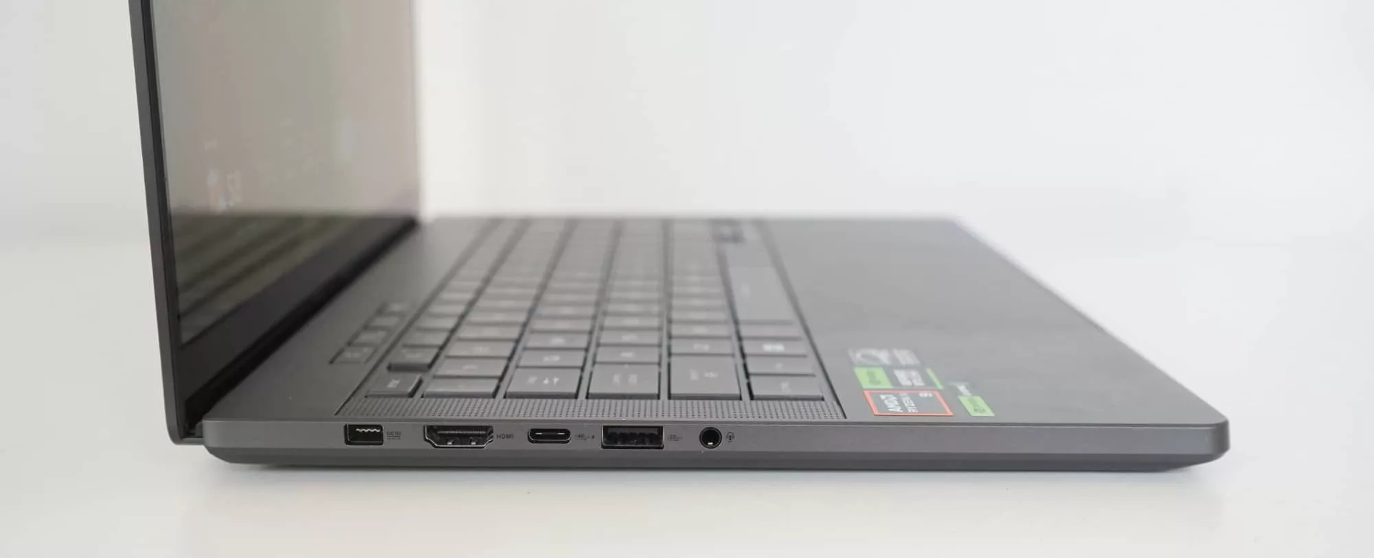 In short, depending on what you use the Ryzen-equipped G14 for, the battery life appears to take a dip. That’s a handful of hours for gaming — two-ish — and closer to 5-6 all up, it’s not fantastic, so keep that power supply handy. Any power supply, either the one in the box or via a USB-C port, because it supports both.