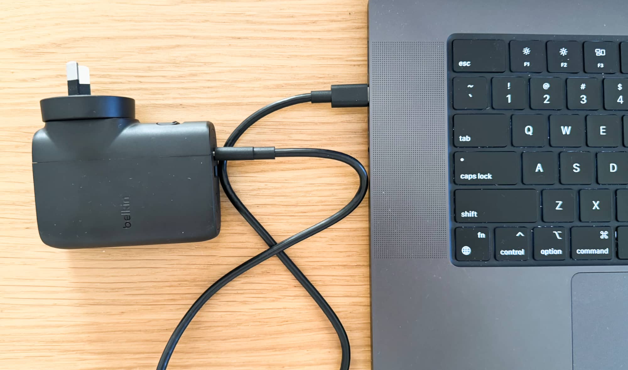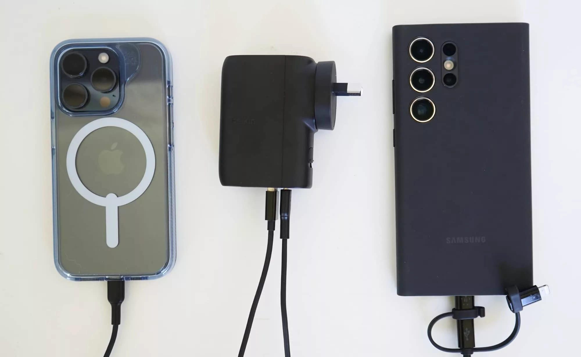 With 25W of power on offer as a wall plug across two ports, it means Belkin’s BoostCharge Hybrid Wall Charger can handle two phones, or even a phone and a tablet, handy if you happen to carry both. You may be able to use it with a laptop, but the speed of charging will likely be slower.