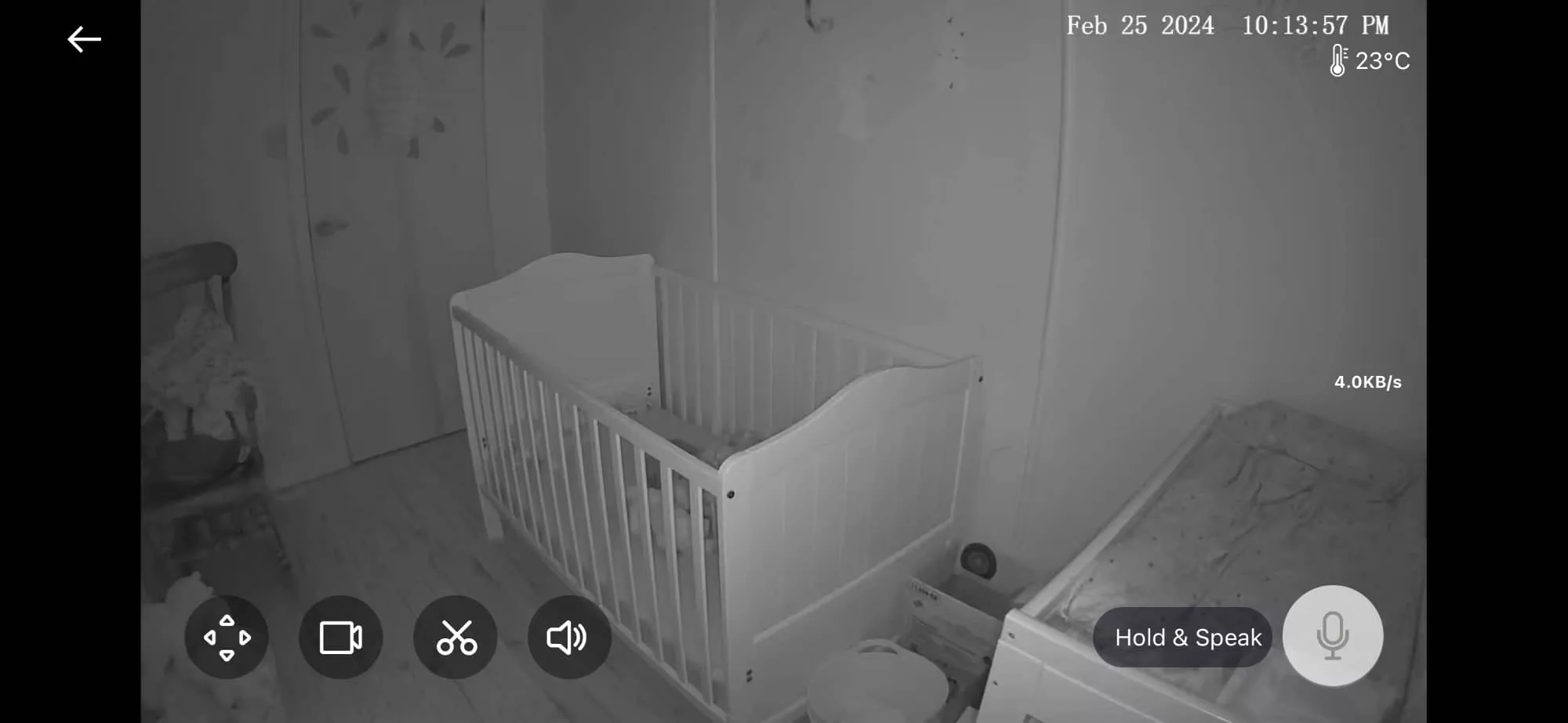 From there, the 2K camera connects to your WiFi and can provide colour vision of your bub in daylight, before switching to the standard black and white of night vision.