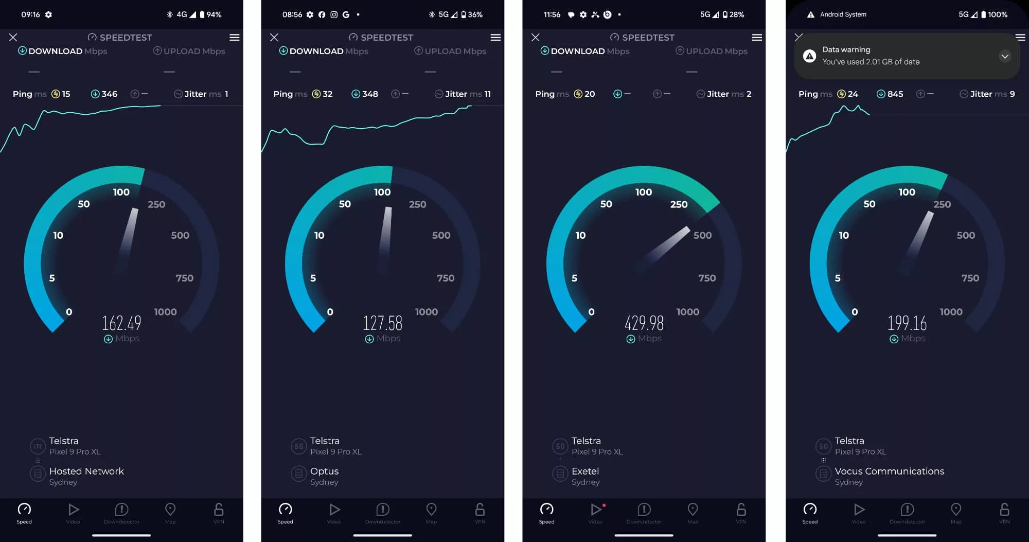 Testing the Pixel 9 Pro XL in Sydney, Australia using the Telstra 5G Wholesale Network, we found speeds hitting a maximum of 429Mbps as we used it.
