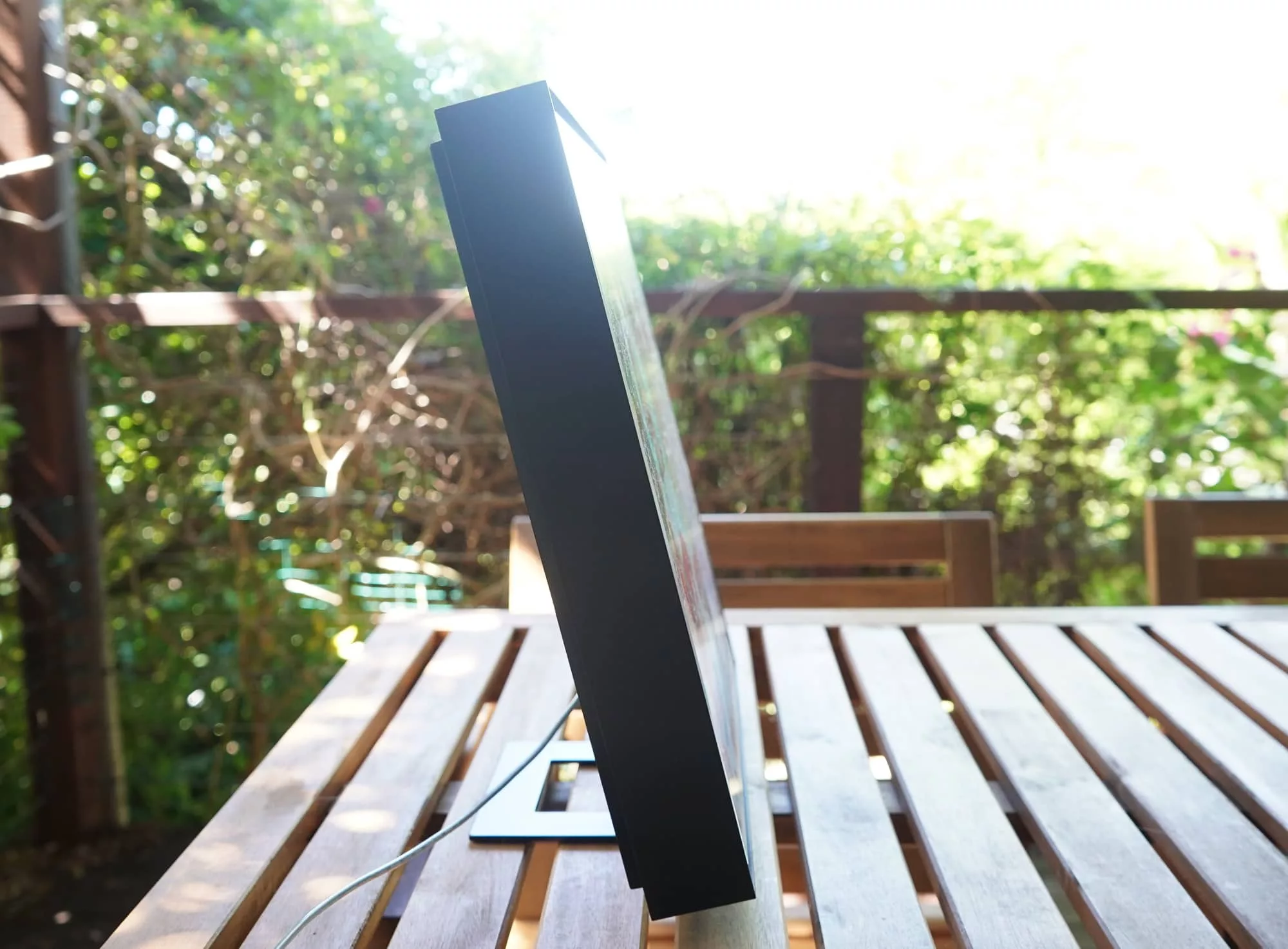 Designed like a picture frame with no obvious speakers or even a speaker grille in the front, you’d have a difficult time working out where the speaker was in a room if you didn’t know what you were looking for.
