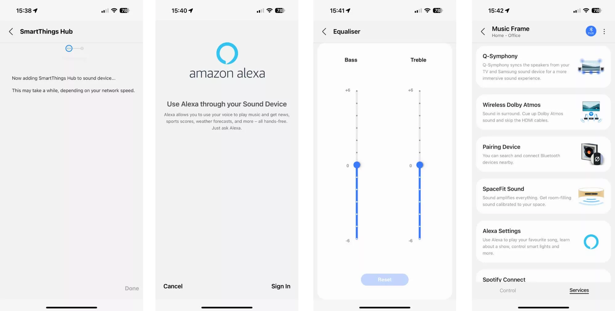 Found along the back edge, you’ll find a few controls for volume and playback, but this is largely the sort of thing where an app will be your go, and mostly Samsung’s everything-app that is “Smart Things”.