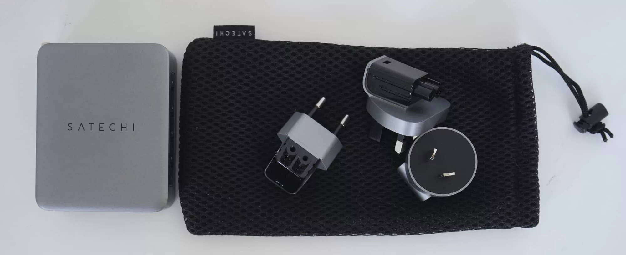Replacing an adaptor is easy — just flip the switch — but the casing is such that if you lose one, you might need to turn to a figure-eight stretch of cable with your plug point of choice to fix things. These aren’t quite the standard and you won’t find them elsewhere from other plugs, so keeping them collected in Satechi’s small little netting back will be crucial to keeping the charger useful over time.