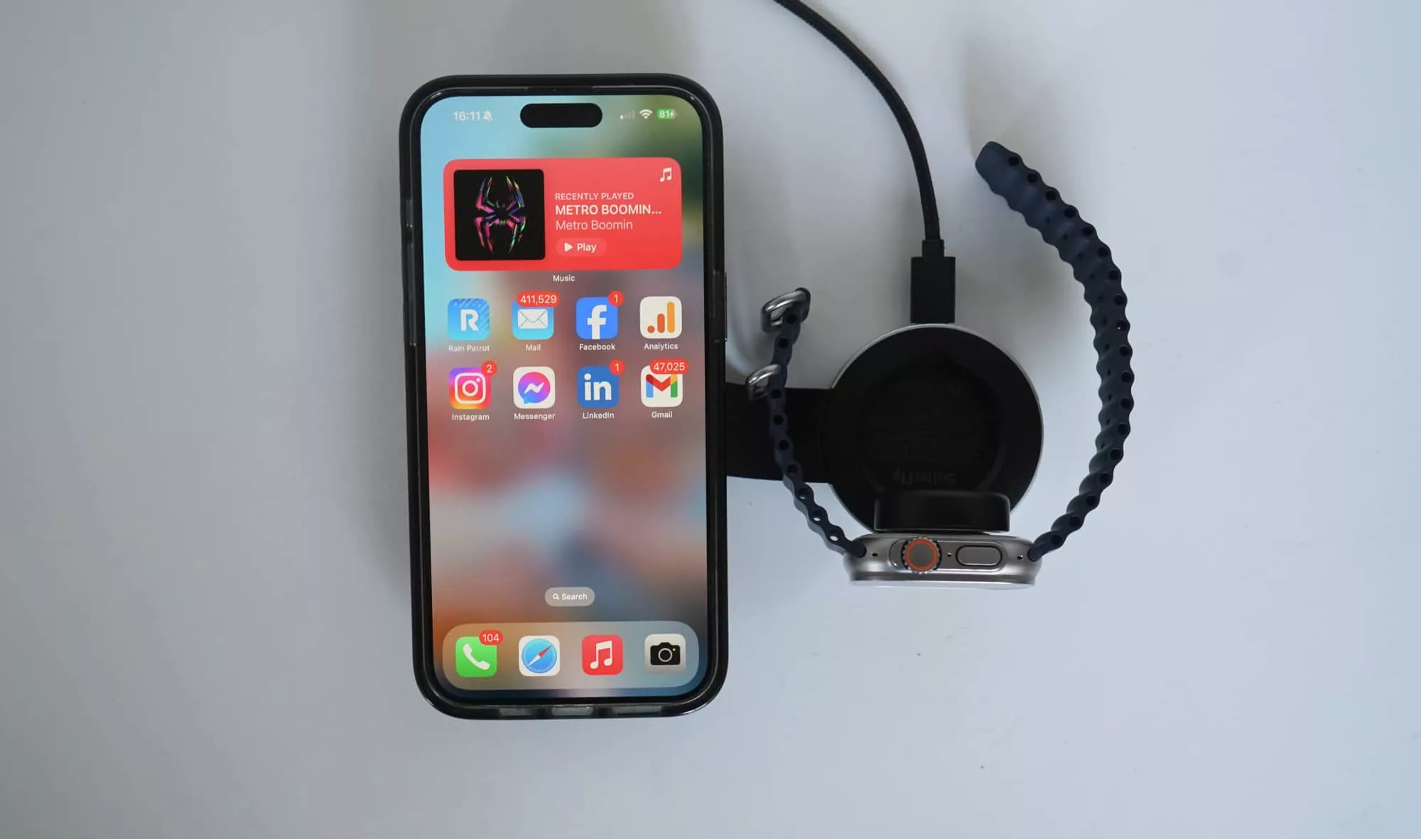 You can even use the back of the MagSafe section to magnetically mount the Apple Watch side, and use the watch charger as a sort of desk stand of sorts, holding up an iPhone for charging or even viewing.