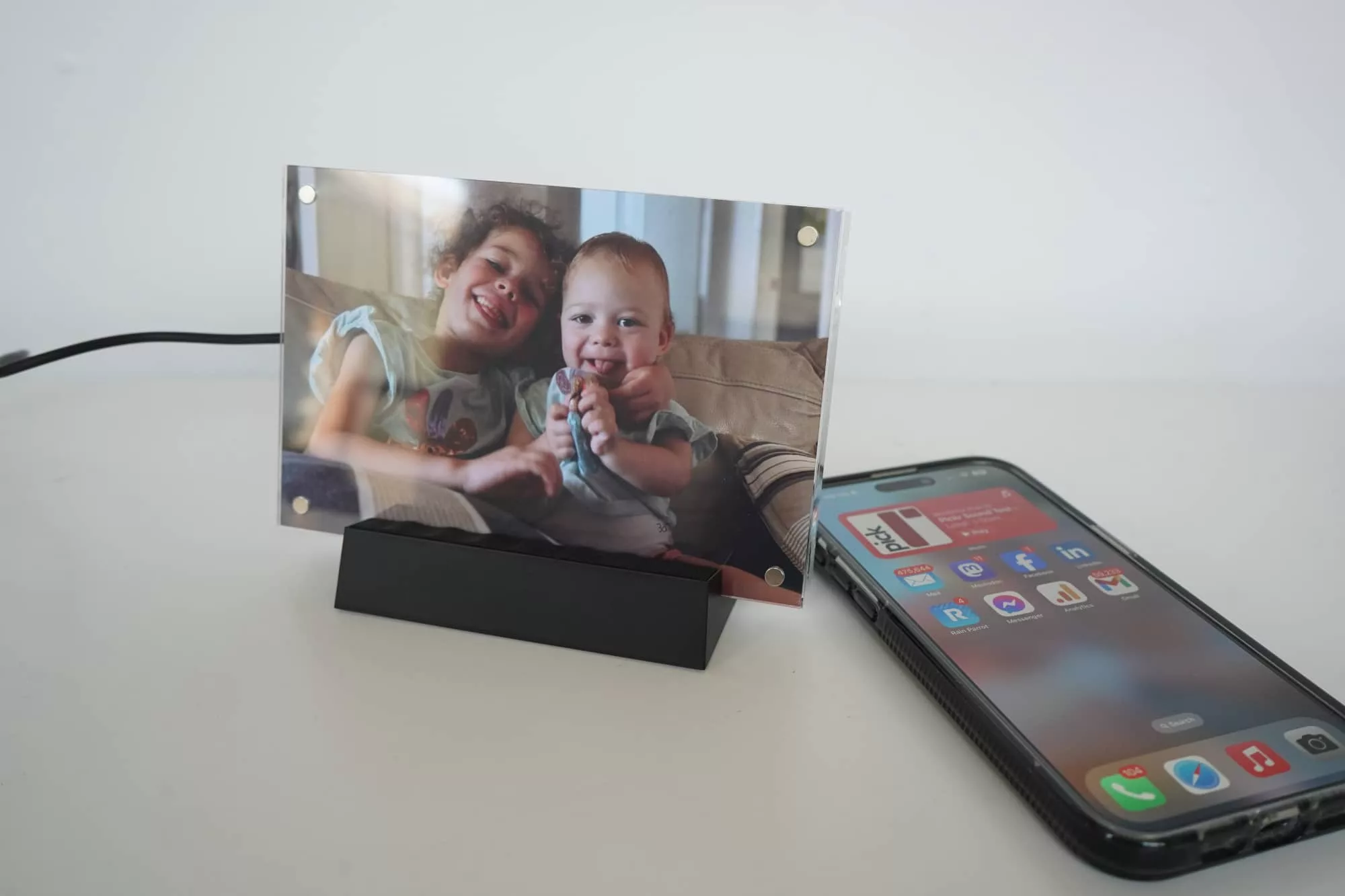 We used to keep pictures by our bed, but now it’s just phone and watch chargers. But if you want the best of both worlds, Twelve South’s PowerPic Mod is a clever combo.