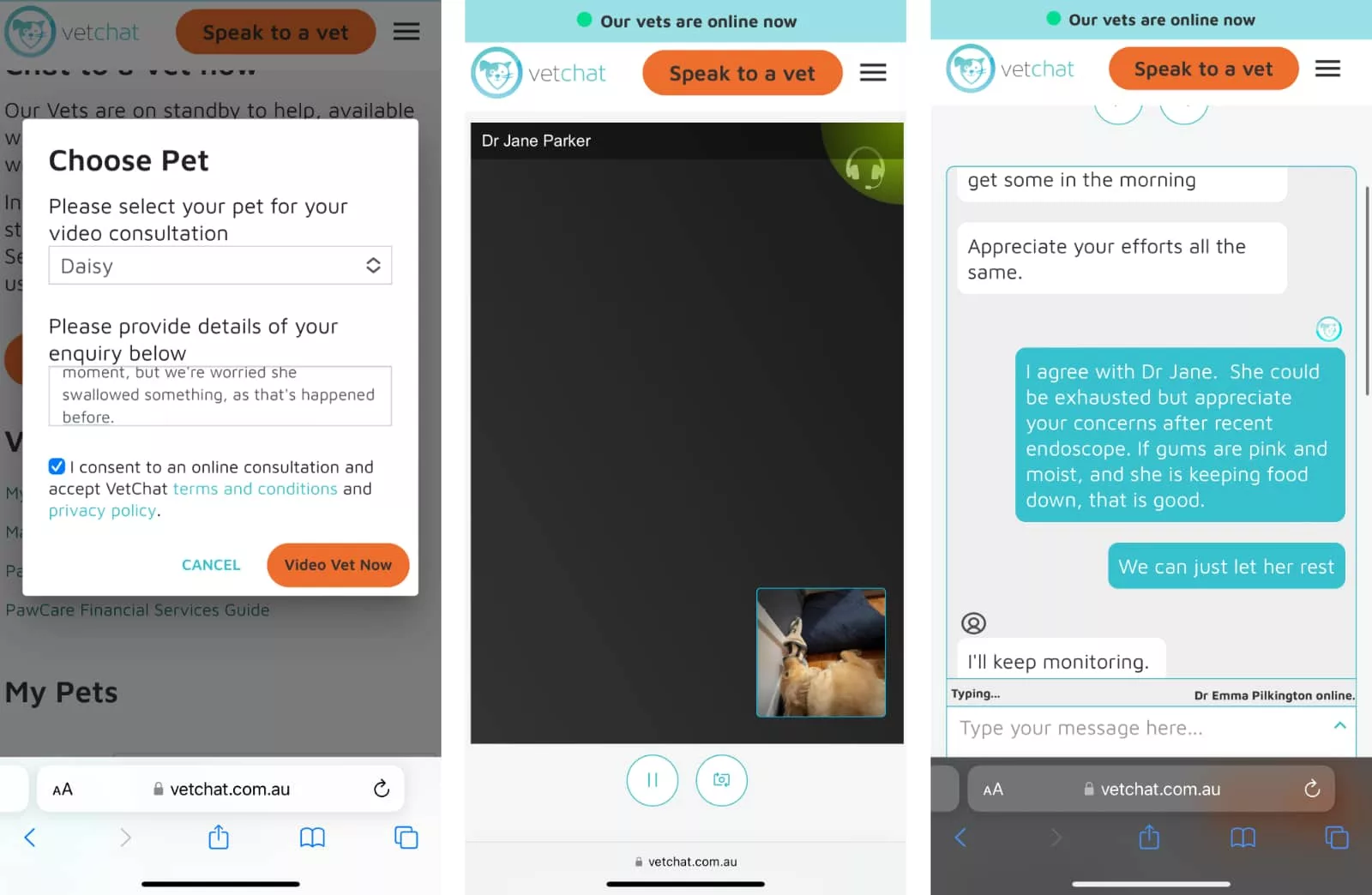 They’re real and exist, and you can find them if you do a bit of legwork, but you don’t have to. The point is to leverage the time of vets online so that you can get some peace of mind, and maybe work out whether it’s critical to take your pet to a vet ASAP.