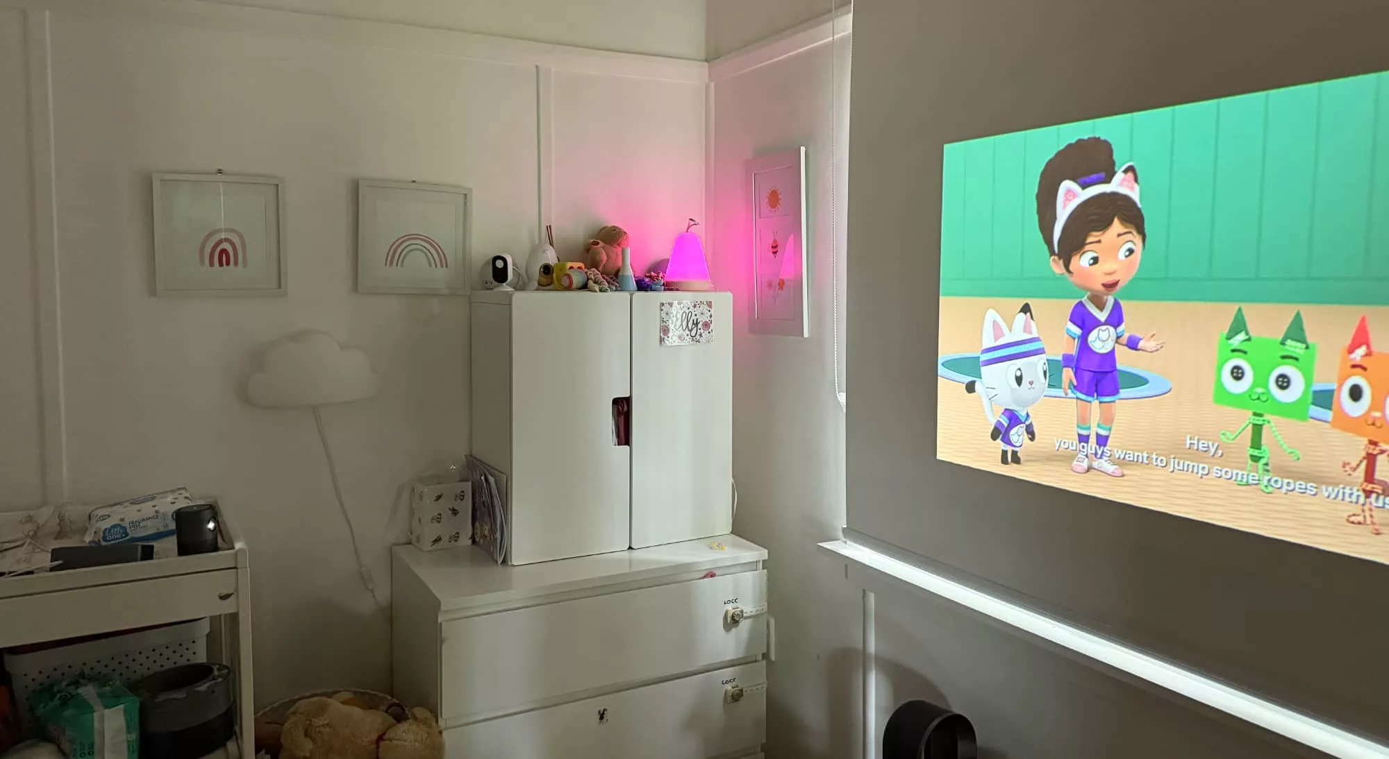 Take the kids rooms for example: leave the projector on a shelf or change table, and you can have an instant compact cinema experience away from the main living spaces.