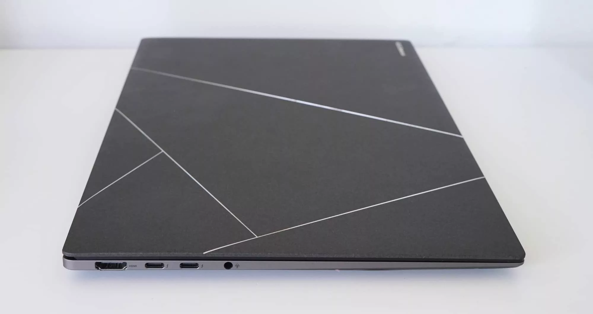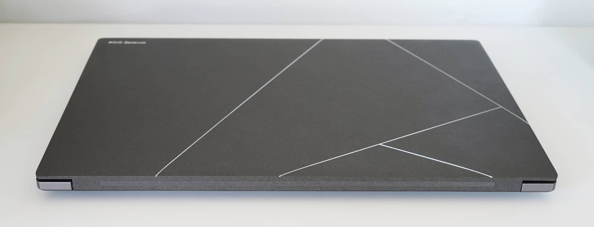 Angles are clearly the Zenbook’s friend, something Asus almost talks up with a lid pattern that no one else tries: lines adorning the top at various angles in a way no one will think your laptop is a competitor’s. This is certainly no MacBook Air clone, that’s for sure.