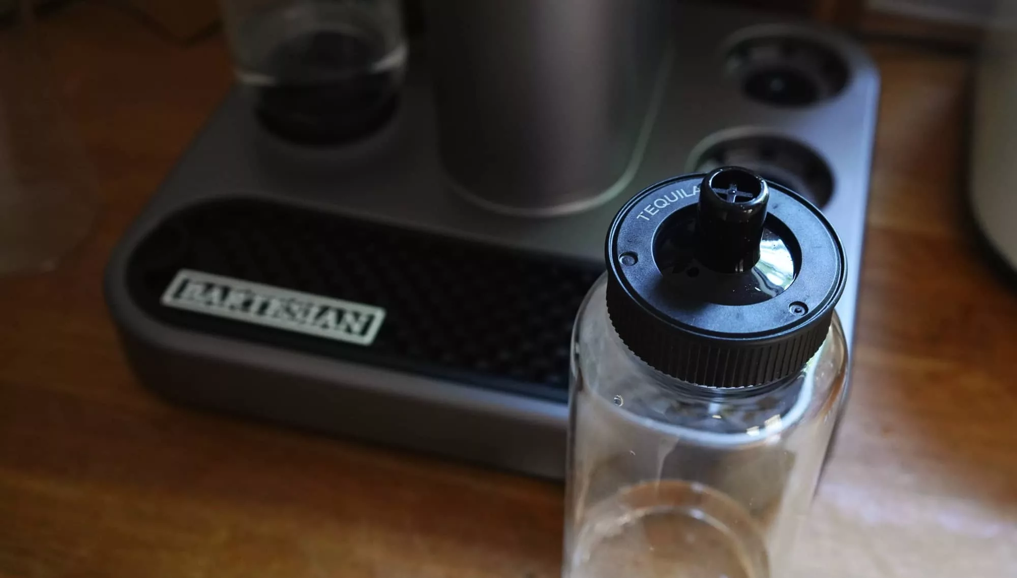 The use of glass bottles is interesting, because it makes for a good looking machine, but with most bottle necks being the same two sizes, one wonders why Bartesian didn’t opt for a filter plug that lets you just attach a drink bottle straight to the machine.