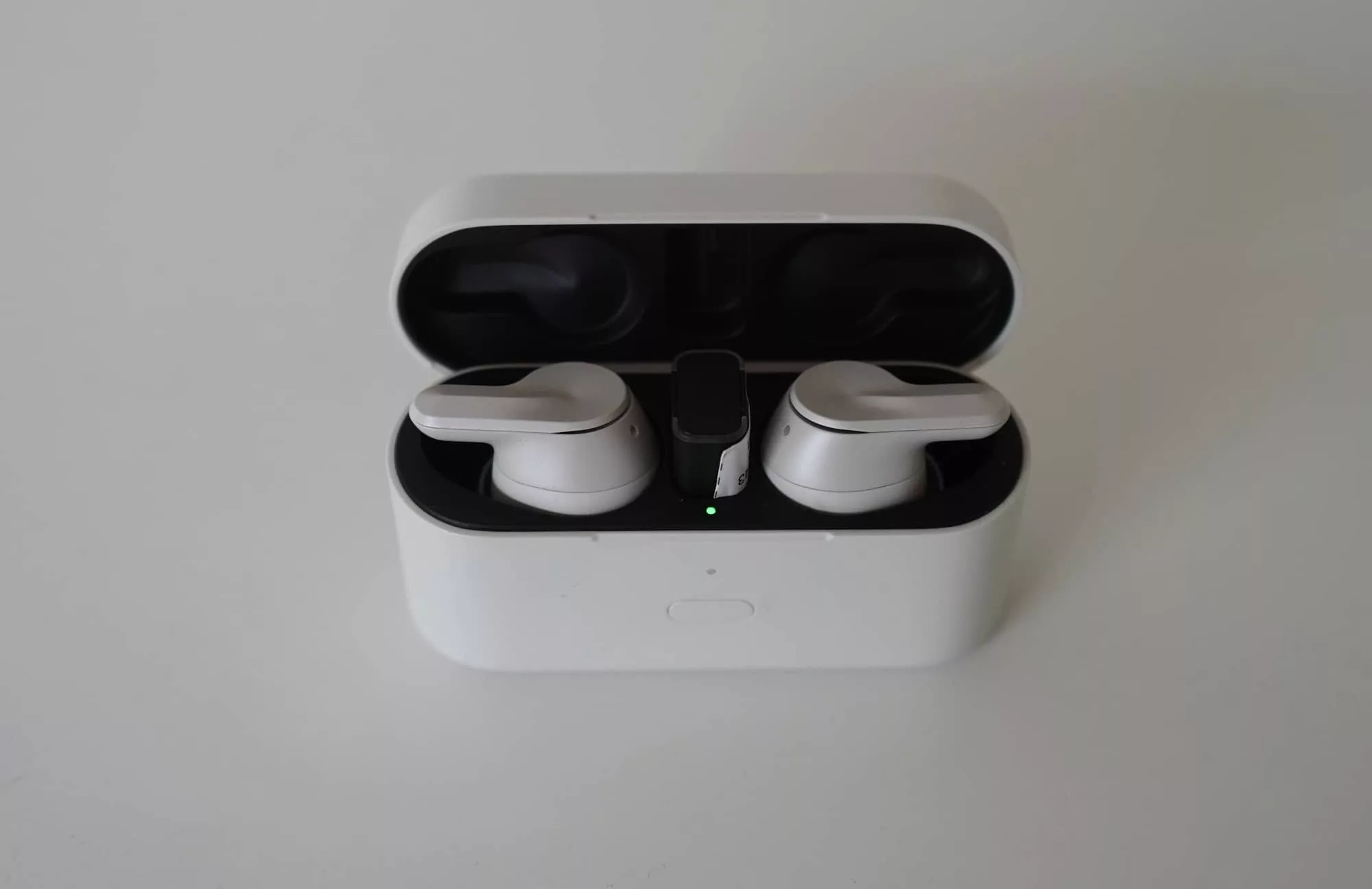 The case stores the USB-C dongle and the earbuds, complete with a battery to recharge the earbuds when not in use. The battery case supports wireless charging, while a magnetic design holds the earbuds in place and the lid firmly closed.