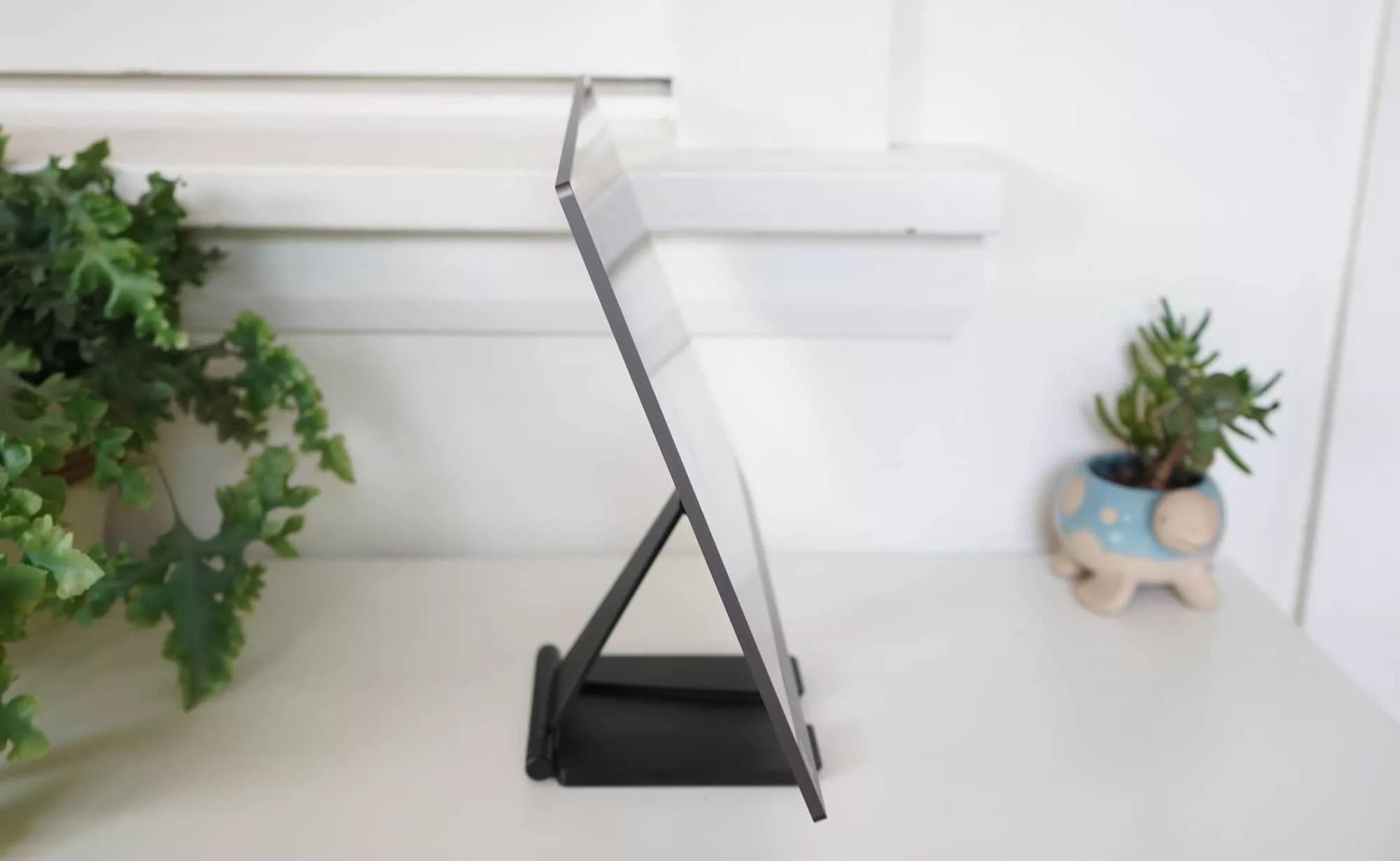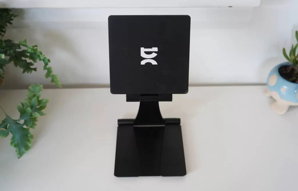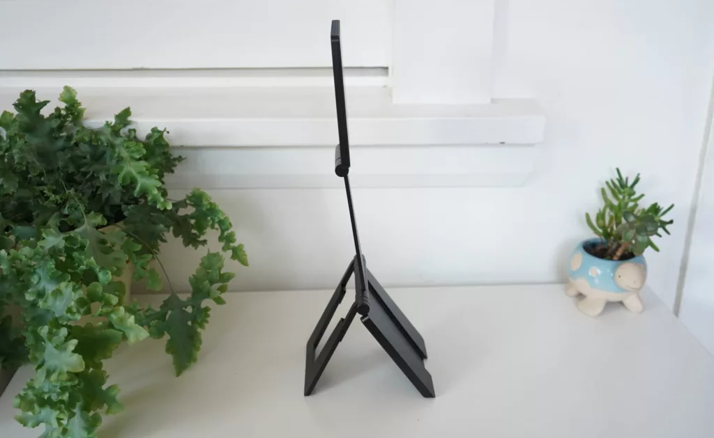 Collapsed down, the Espresso’s Stand+ is a series of metal panels held together with tight hinges and a magnetic base.