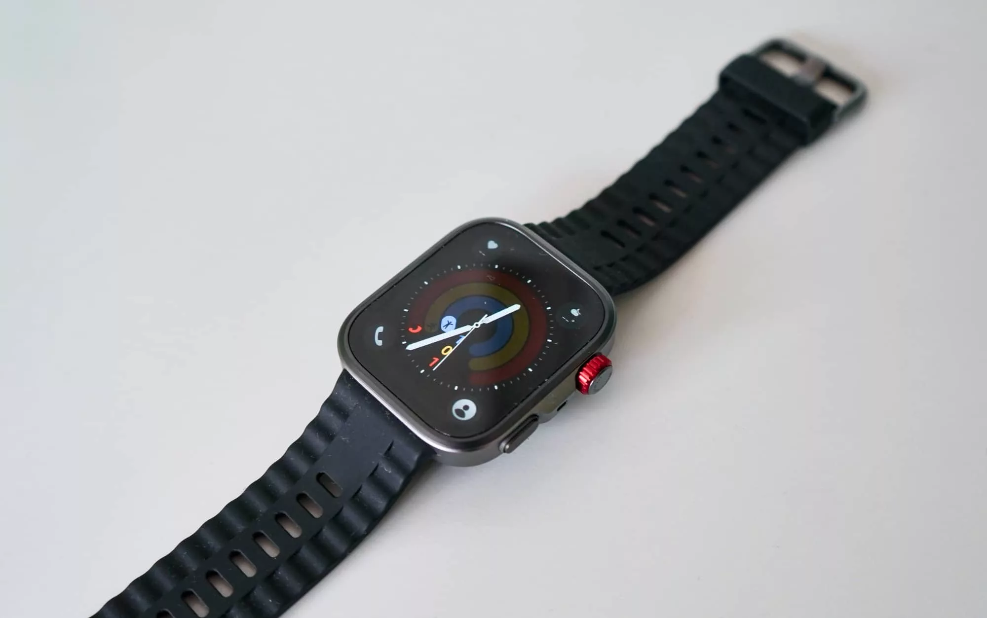 The design is ripped straight from the Apple Watch Ultra series, so much that even the circular Huawei Watch GT series has more individuality than this obvious clone.
