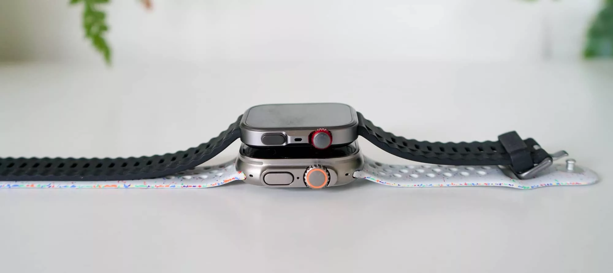That’s both thinner and lighter than the watch it borrows from: the Apple Watch Ultra 2 is 14.4mm thick and weighs twice as much at nearly 62 grams.
