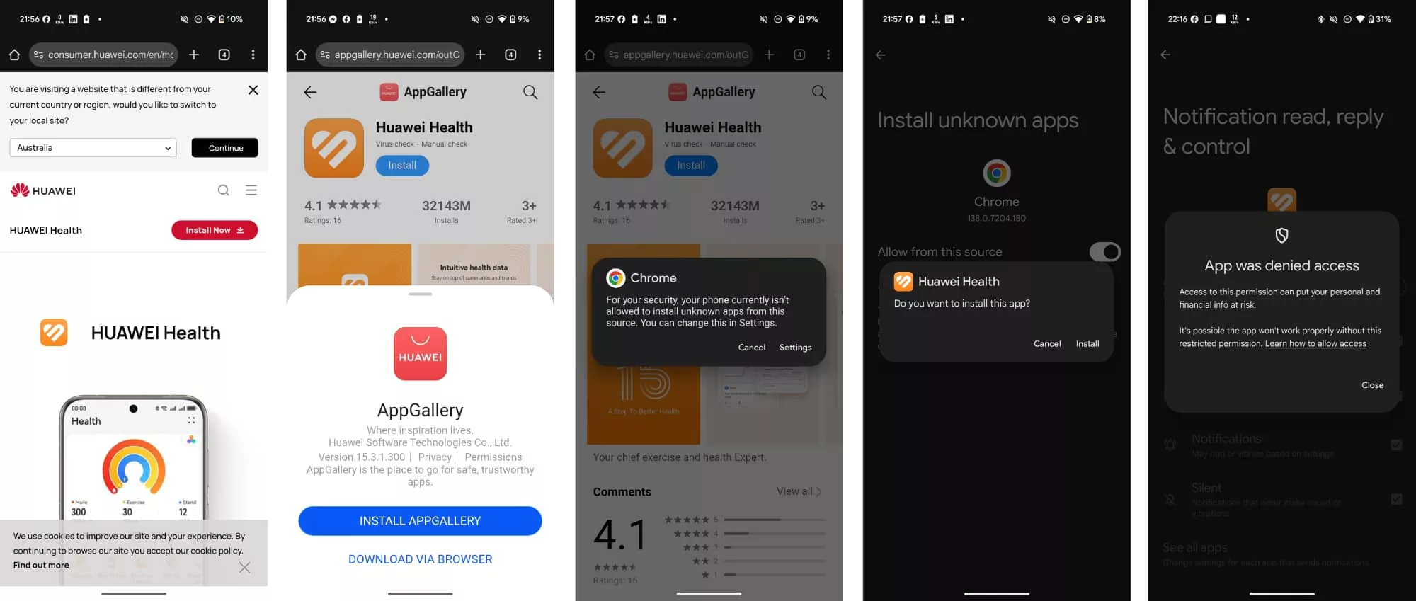When it comes to Android, you need to find the app, which can’t be found on the Google Play Store. Instead, you need to make your way to Huawei and choose whether you want to install Huawei’s App Store equivalent in AppGallery, or just install the Health app by itself. At which point, your phone will probably say no, and you’ll need to override it and just force it to install.