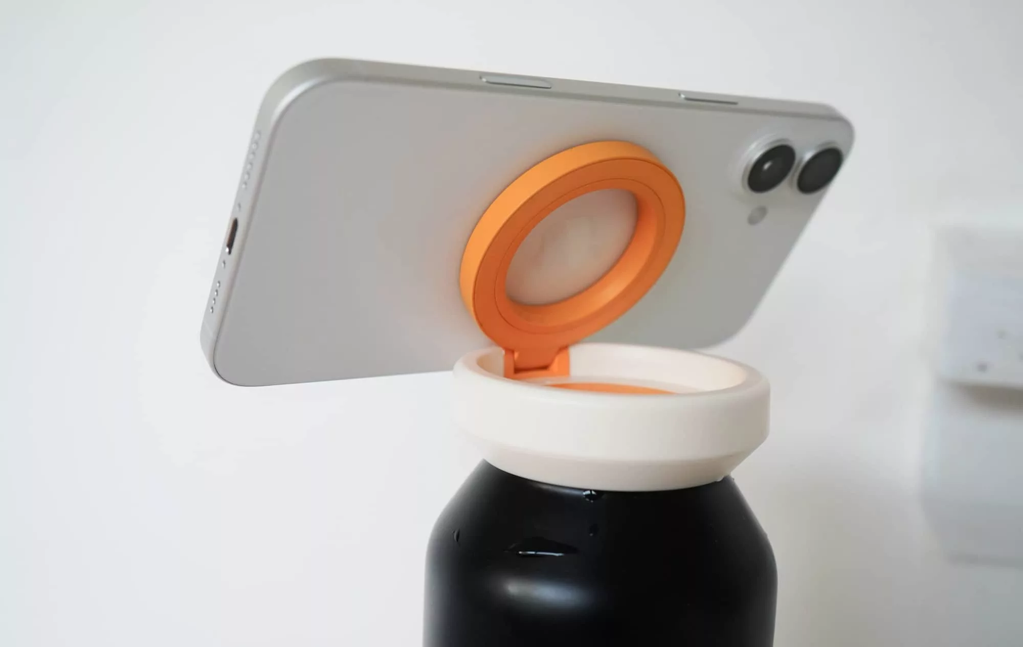 The MagSafe ring sits on a hinge and essentially turns the Reevus bottle into a phone stand of sorts for recent iPhones, covering anything from the iPhone 12 onwards including the current iPhone 16 and 16 Pro Max.