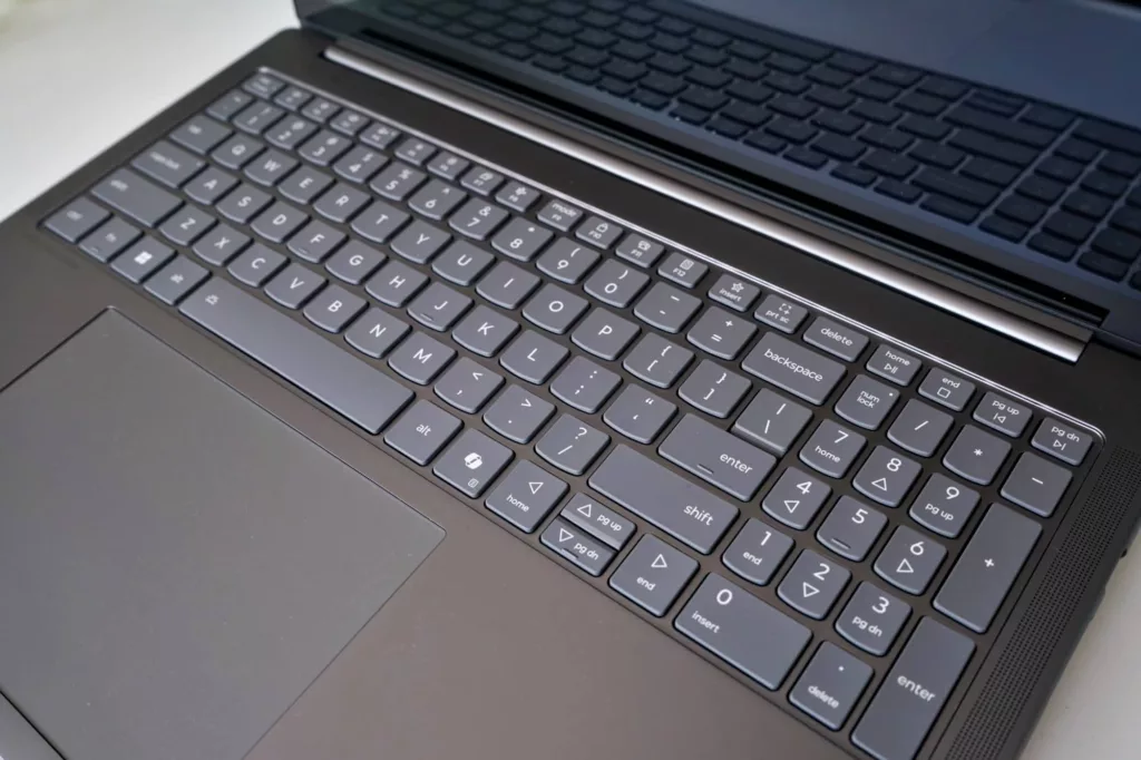 A deliberately spaced full-width island-key keyboard with decent travel awaits you in the Yoga 9i Pro, complemented by a spacious trackpad that takes much of the underside of those keys. It’s big and wide and super responsive — just the kind we like.