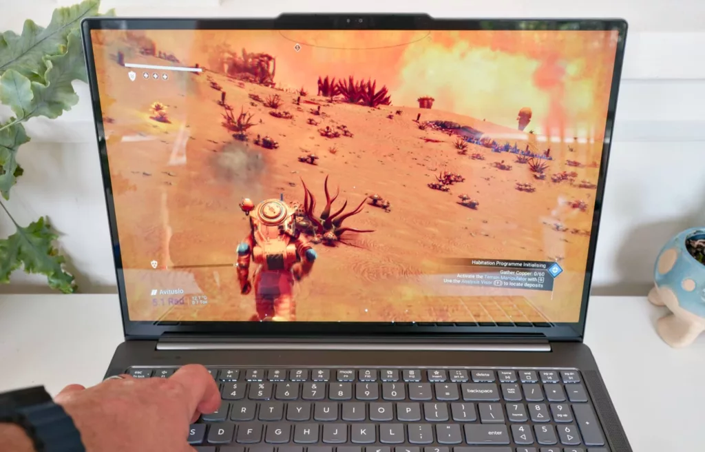 Testing No Man’s Sky with the Yoga Pro 9i Aura, we found it looked and performed well, providing a little bit of lag from camera changes, but not a heap of them. It mostly delivered the speed you’d expect, something that’s likely helped by the Nvidia hardware under the hood, as well.