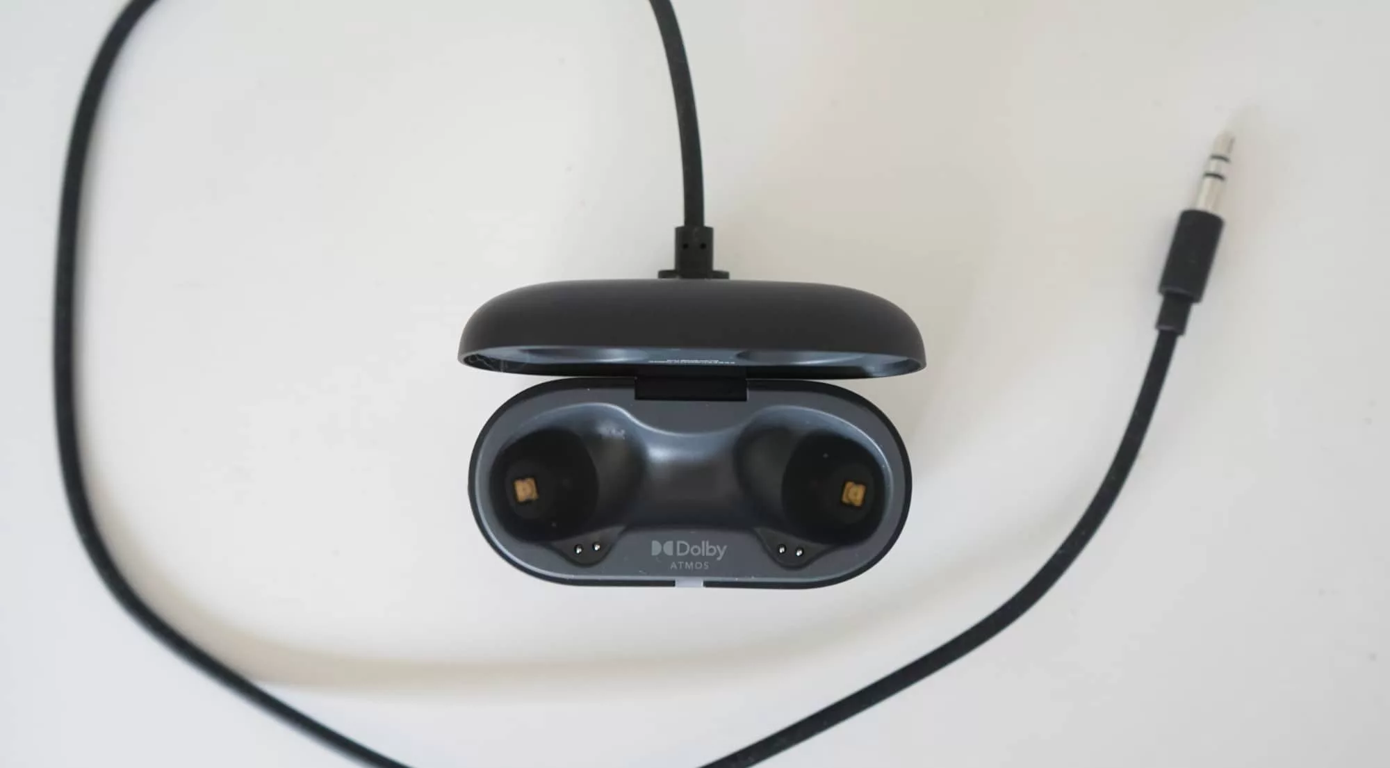 For instance, if you wanted to listen to the inflight movie using the LG T90 earbuds, you’d bring the special USB-C to 3.5mm cable and plug one end into the case and the other end into the headphone jack on the plane. And just like that, the T90 earbuds would shift over into wire free mode.