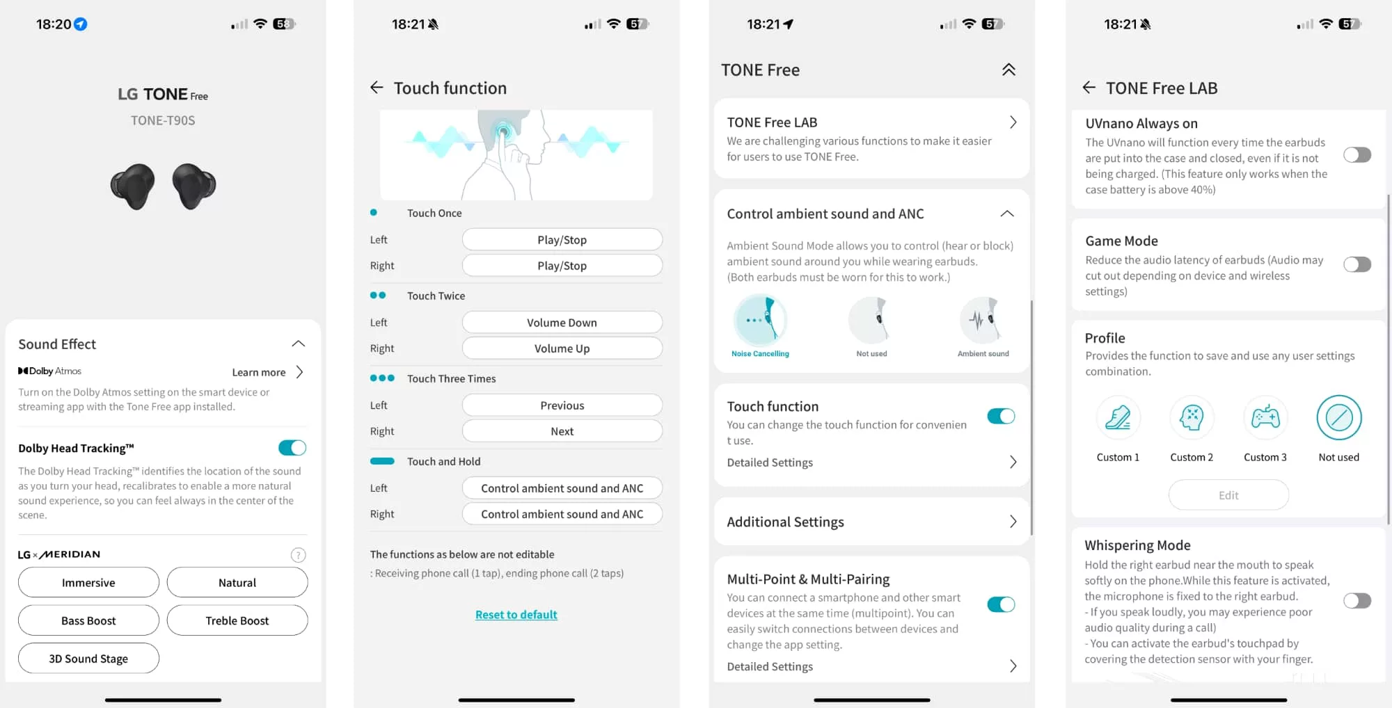 It isn’t quite the same with the LG T90S, but the vibe is: pick a profile and your sound will change. Pick the wrong profile and, well, you won’t always get the best sound. These aren’t so much flat earbuds with their own style, it seems.