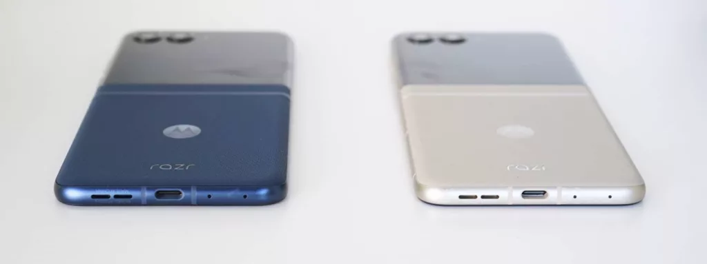 An identical design save for a slightly different texture in the body tells us a little about what we’re dealing with in the Razr 60, but the specs pretty much confirm it: aside for the chip, you can largely expect the same hardware.