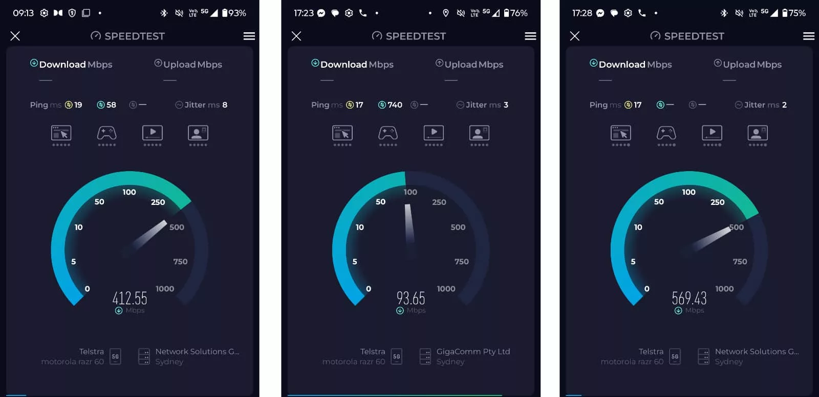 Even the 5G is fast, delivering speeds nearing 500Mbps in our tests in Sydney, Australia using the Telstra network by way of Mate Mobile.