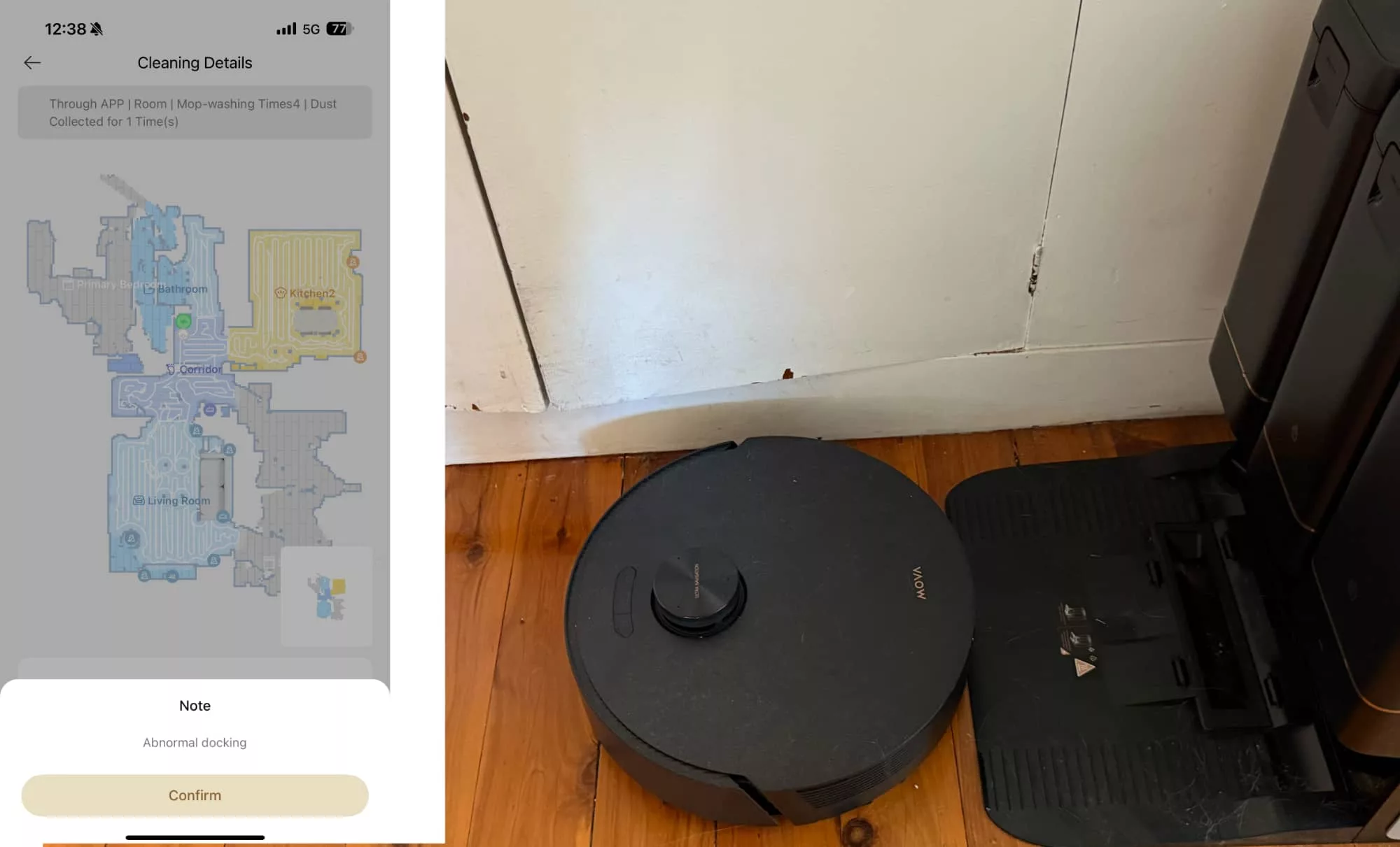 It can be maddening; how can a robotic vacuum that cleans the floor this well struggle with a bug this severe? And yet it kept on happening. Over and over again, when the Z50 Ultra was this close to finishing, it would show how close it was by stopping.