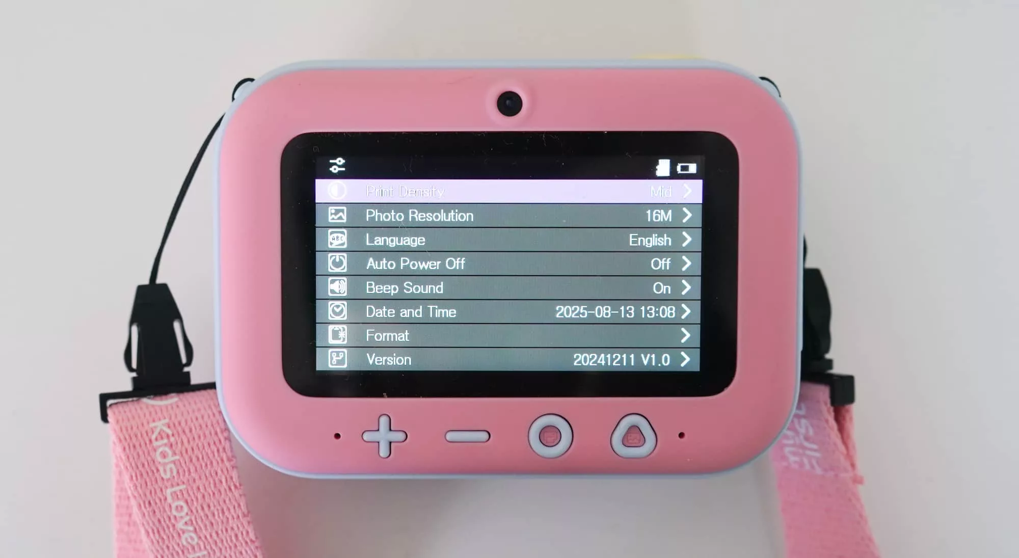 For instance, the biggest is the shutter, but only for firing a shot without printing a picture or holding it down to go into the video mode (of which there is no setting for). The other two are for a back button and settings, but hold them down and you’ll flip the selfie mode on or power the camera on and off (respectively).