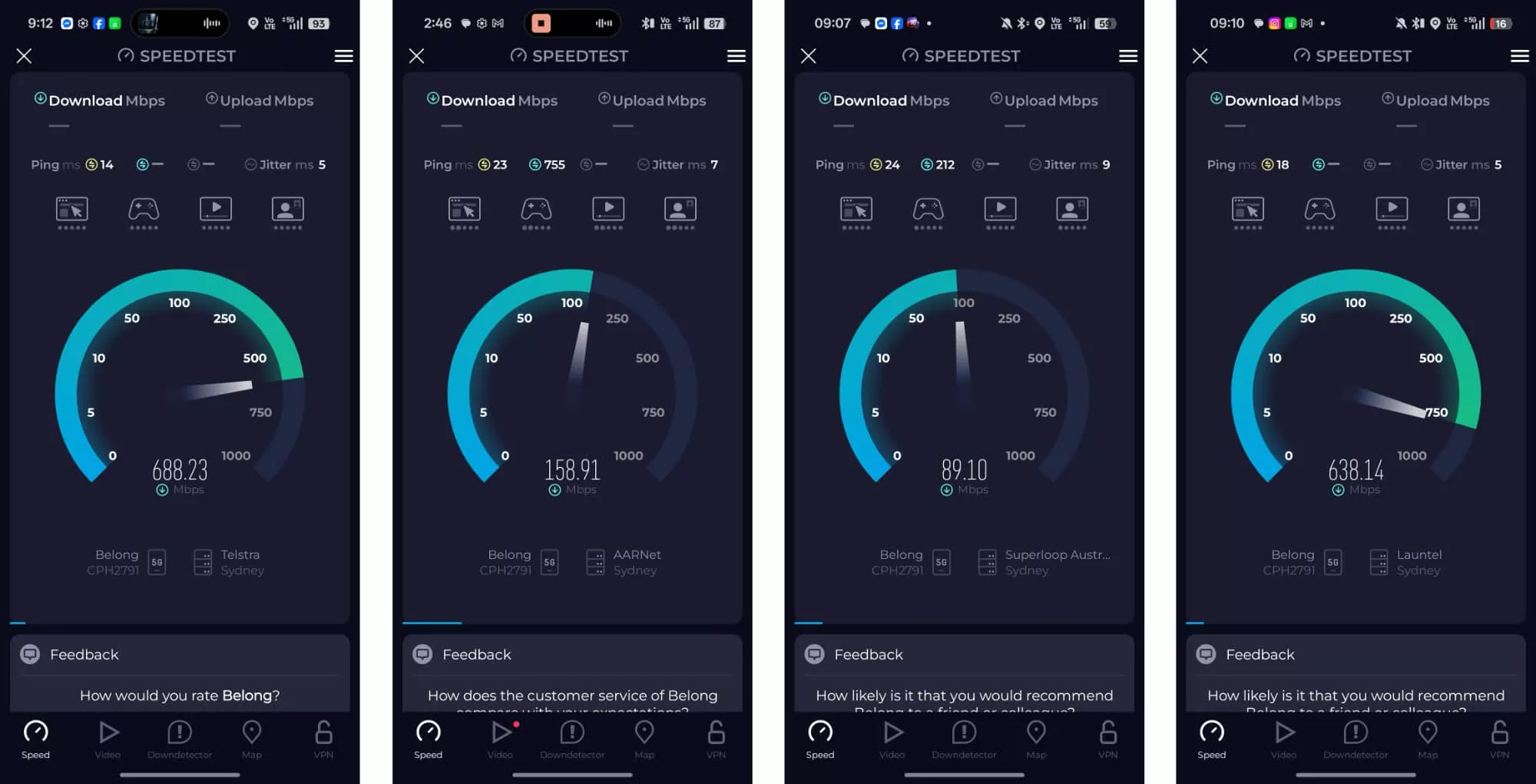 Tested in Sydney, Australia on the Belong network powered by Telstra, we found speeds as high as 688Mbps before Belong’s mobile handicap system kicked in and pulled back our speeds.