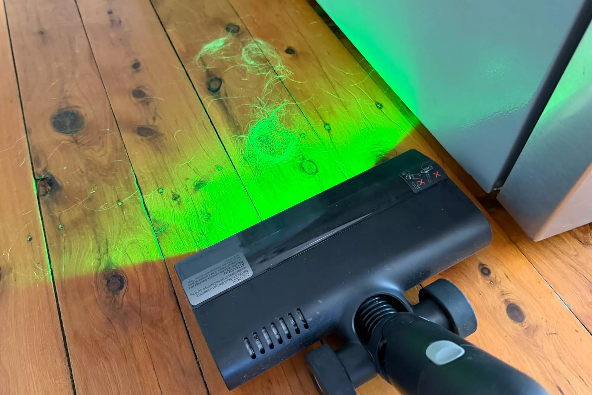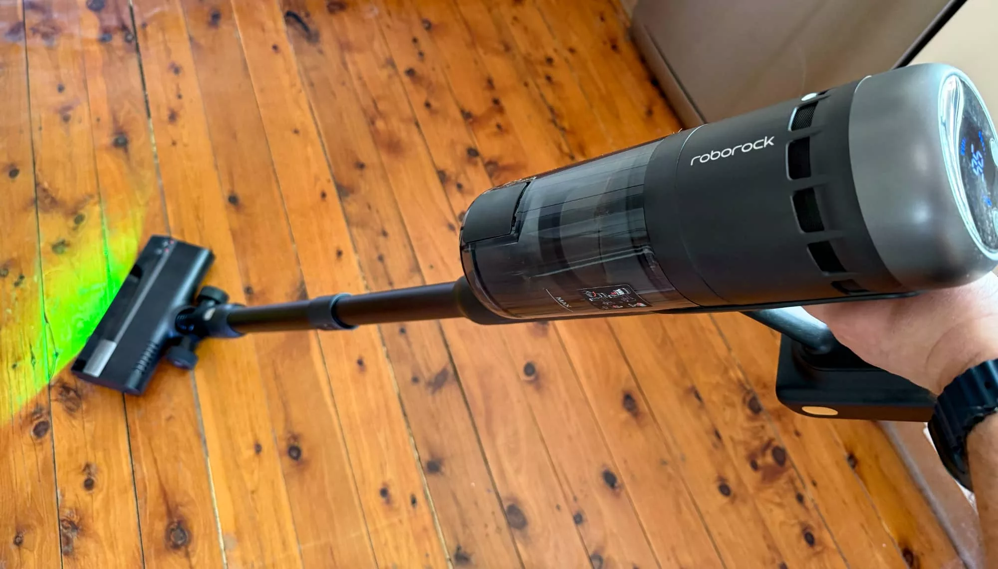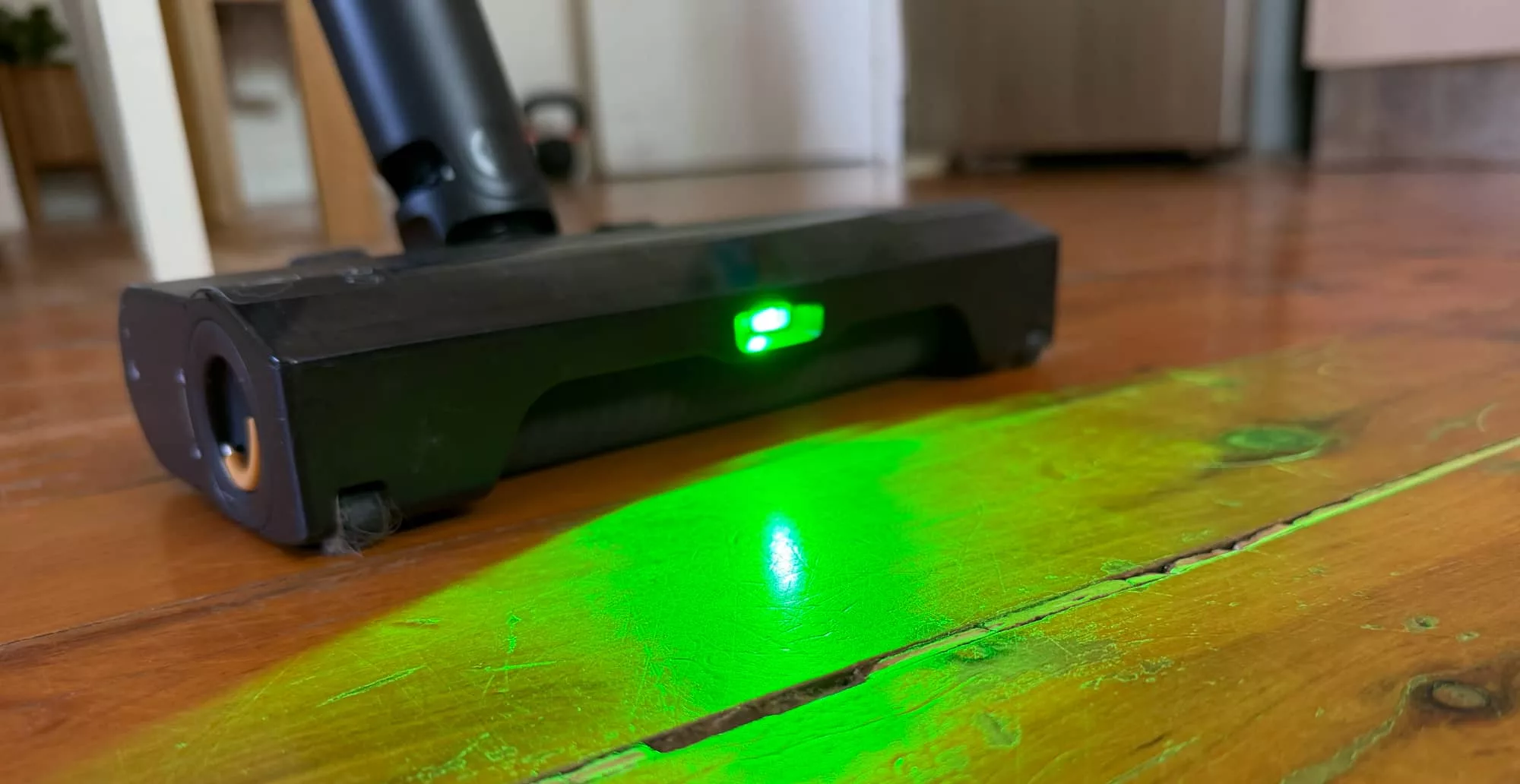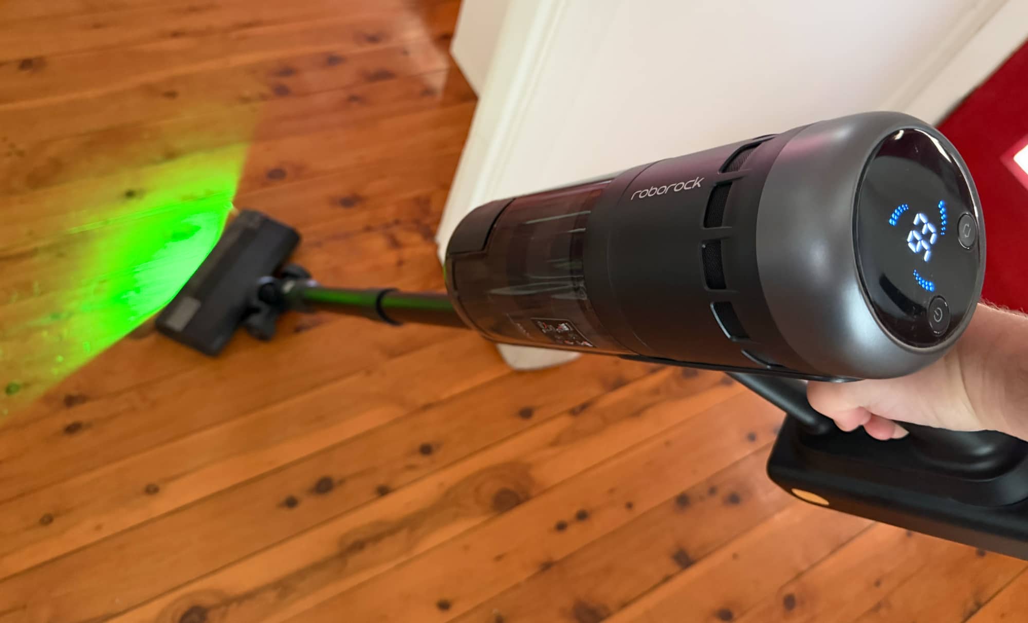 Roborock’s green light looks more like a light than a laser to this reviewer’s eyes, so you’ll get that, which works more or less the same: shine the green light at your floor, and the dust you normally won’t see with your eyes is lit up, ready for you to suck it up and move on with your life.