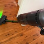You’ll find an extendable tube easily mounted to the vacuum, plus a roller head with a green light attached to it. From what we can tell, the green light is an LED rather than a laser; Dyson may have introduced green laser dust finding in the V15, but from what we understand it moved to LEDs later down the track.