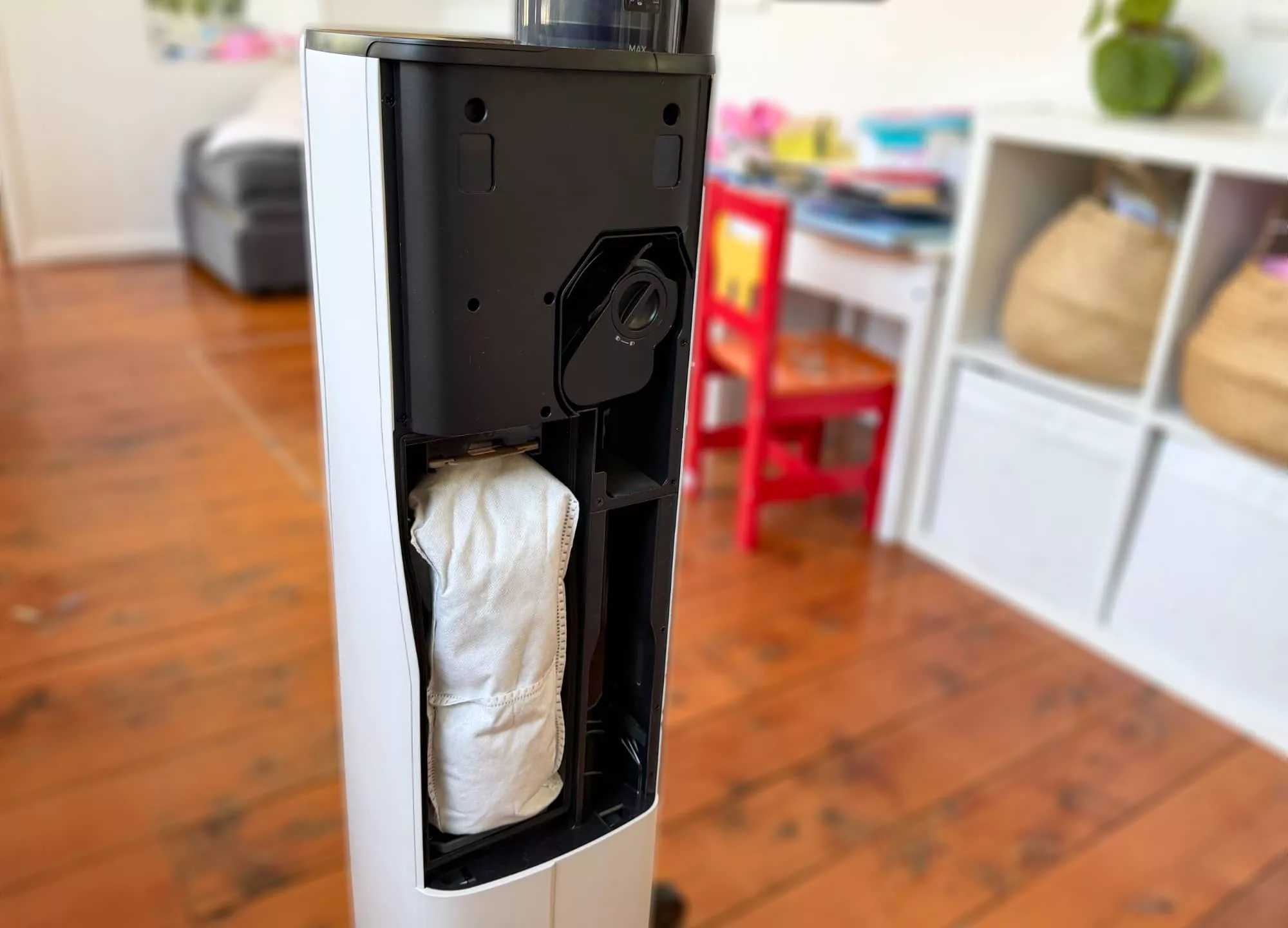 Armed with power and a bag (of which it comes with two in the box), the H60 Hub Ultra is like the Roborock Qrevo Edge it that it can automatically empty your H60 once it’s docked and charging, its futuristic look also housing the extra accessories, too.