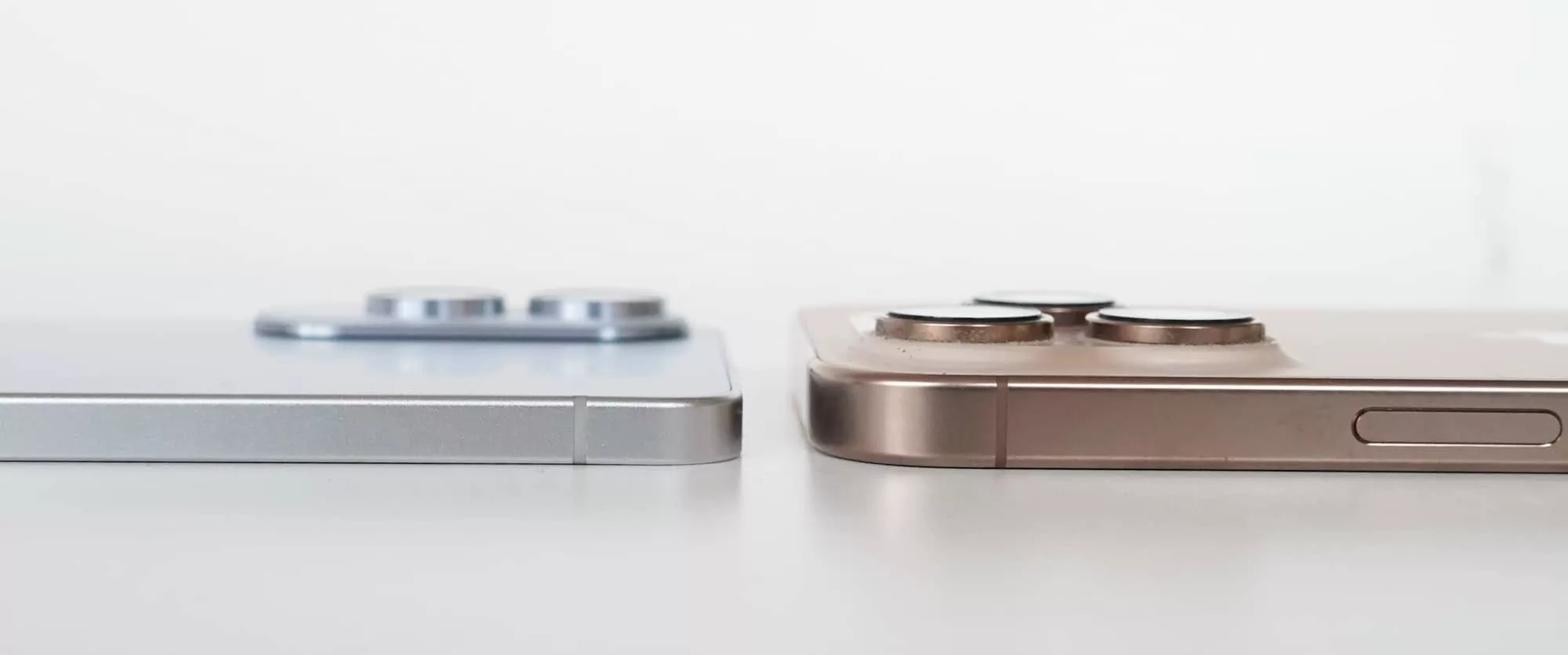 It’s when you compare other big high-end phones, the S25 Edge really stands out: the 8.25mm titanium edge of the iPhone 16 Pro Max doesn’t seem that much thicker than the 5.8mm titanium frame on the Galaxy S25 Edge, but bring the camera close and there’s a clear difference.