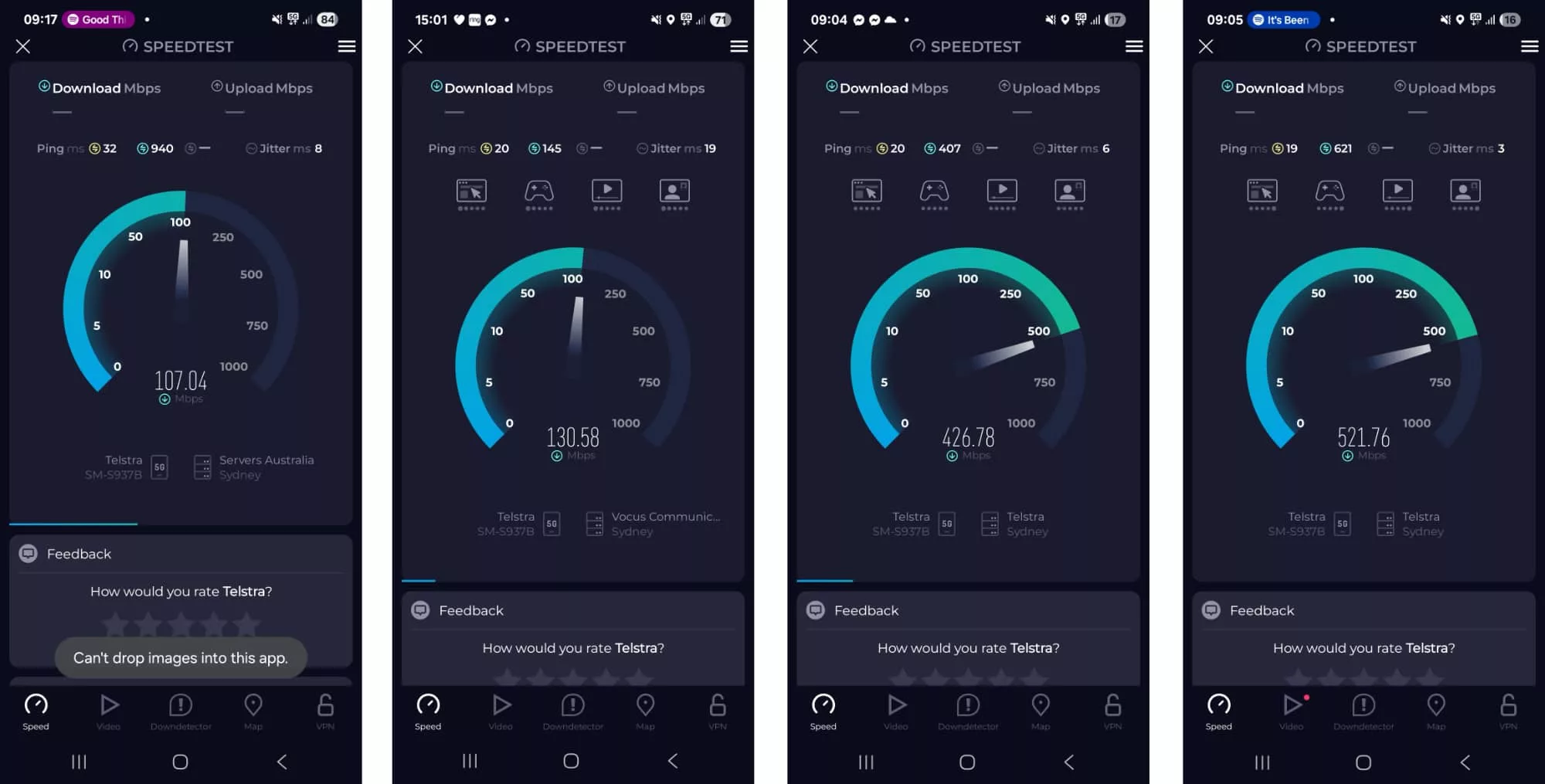 A similar picture has been painted for the 5G, which tested in Australia on the Telstra Wholesale Network (by way of Mate) in Sydney achieved speeds as high as 528Mbps, essentially granting solid 5G access if you can reach it.
