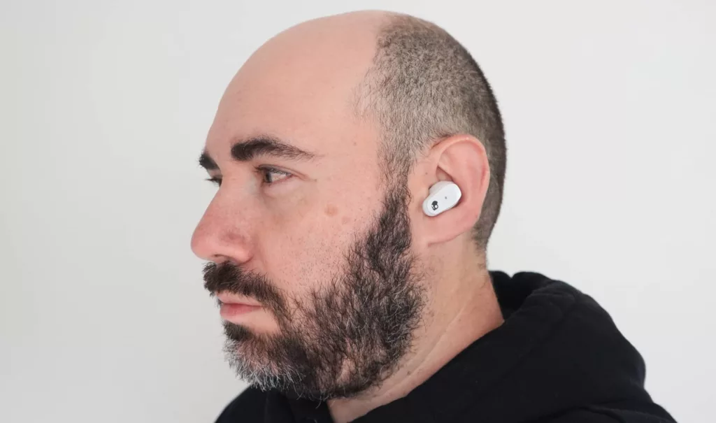 Fortunately, the earphones are comparatively compact, with their slim design reminding us of the original Bose QC Buds, but with a Skullcandy logo on the front. There’s a tip and an ear gel stabiliser, and the whole thing just has a Bose vibe to it.