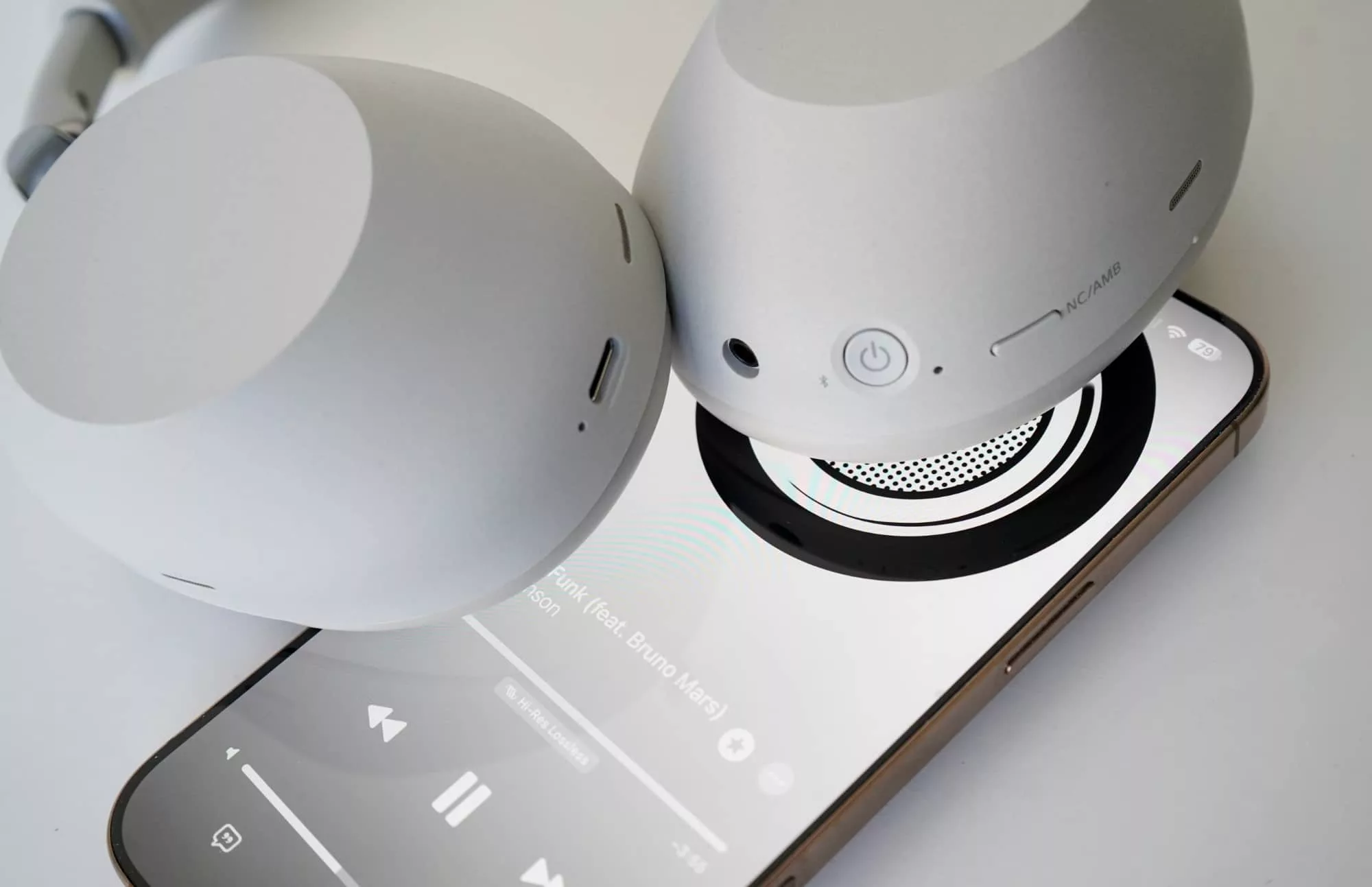One hand pressed on the right side panel still activates the quick hear-through mode, while pressing the “NC/AMB” button on the left can rotates through whether you’re turning the mics on for noise cancellation or switching them on to hear through entirely for ambient mode.
