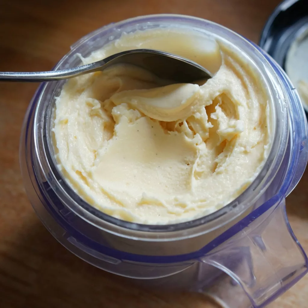 Normally, this comes from churning liquid in a frozen bowl, a process that gives you those tiny ice crystals.