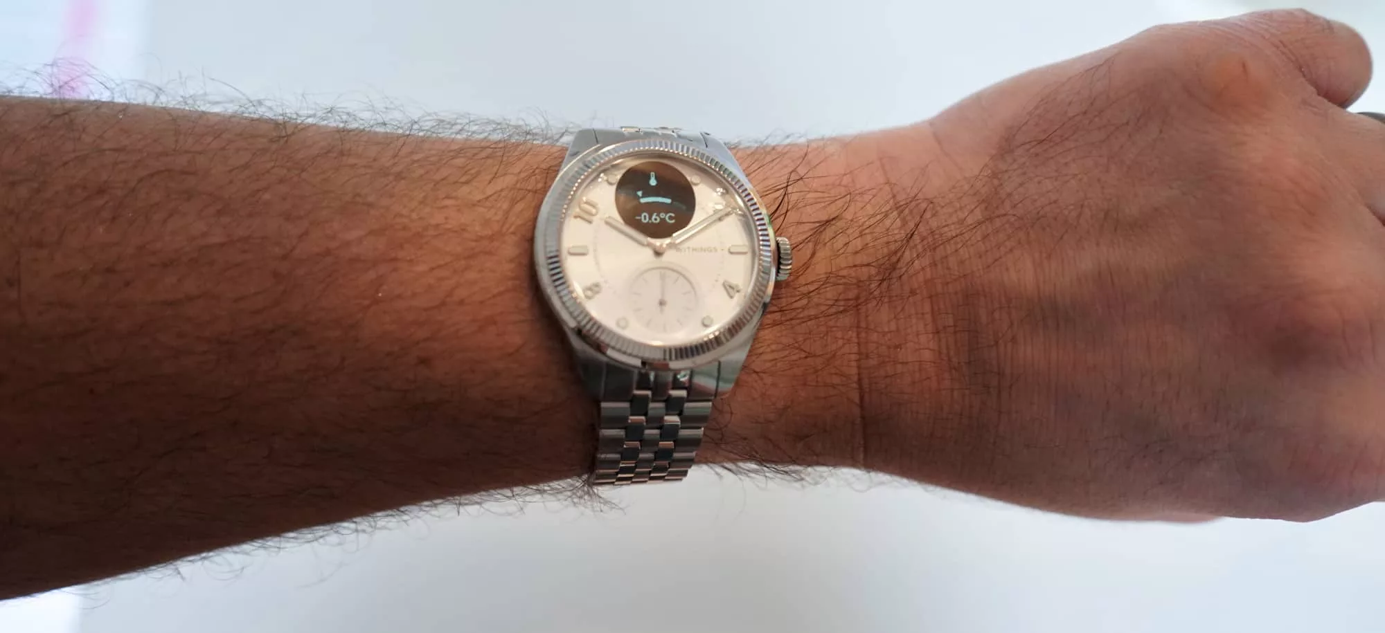 That means you’ll find an electronically-controlled timepiece in a 39mm design, sensors to cover steps, heart rate, SpO2 blood oxygen, electrocardiogram (ECG), temperature, and menstrual cycles, all in a design that looks identical to a classic analogue timepiece in its stainless steel case and protected by sapphire glass.