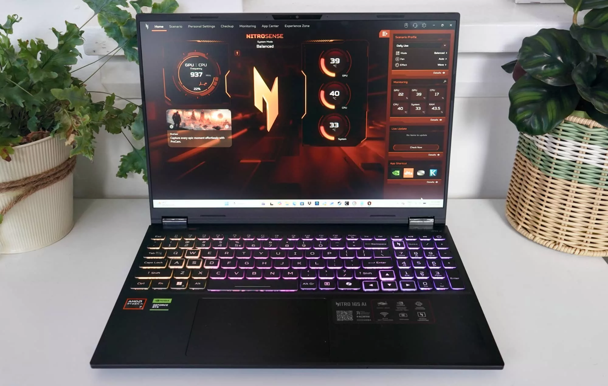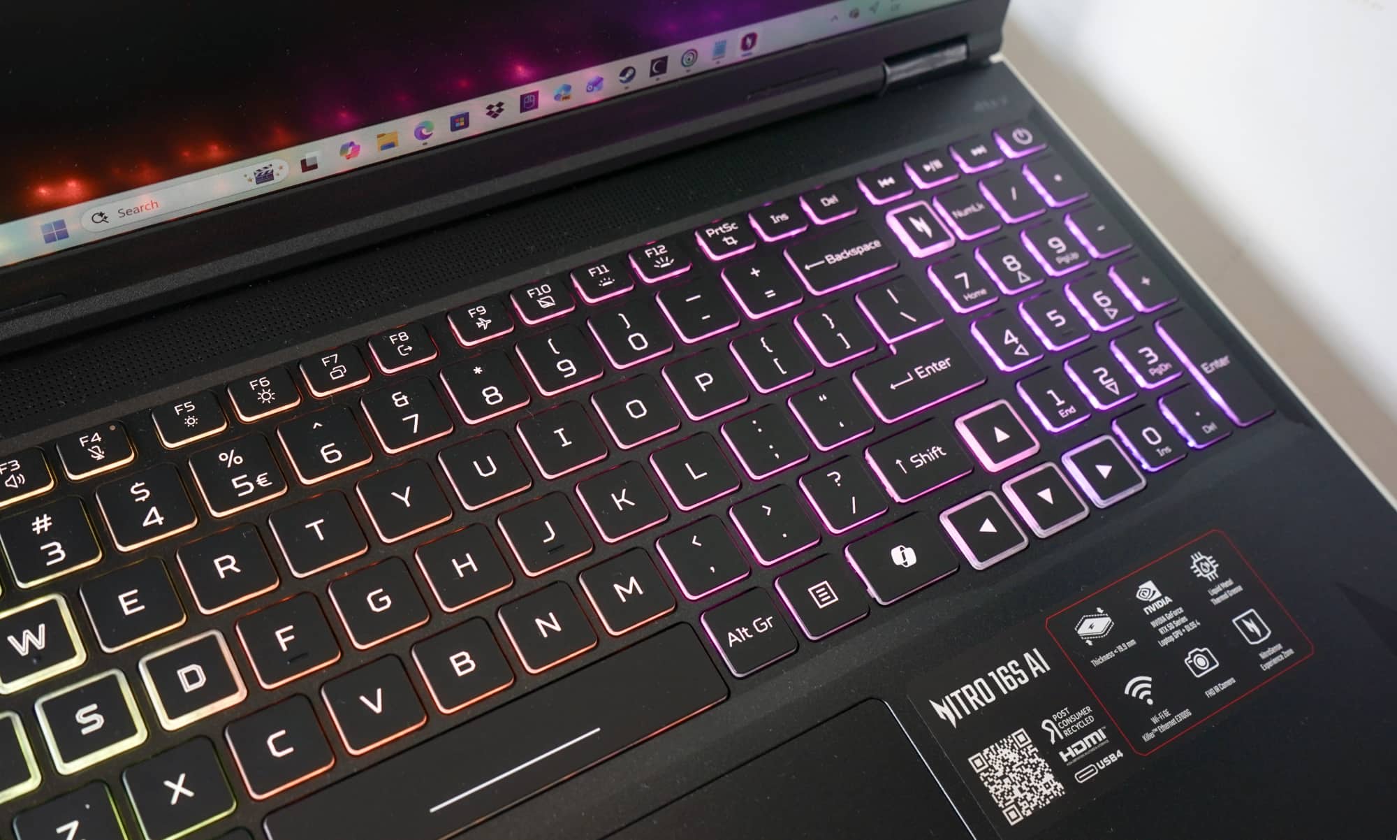 It’s an aesthetic that works, and one that gives gamers a slender yet stealthy look. You won’t stand out with the Nitro 16S AI, but you should be happy with what it can do.