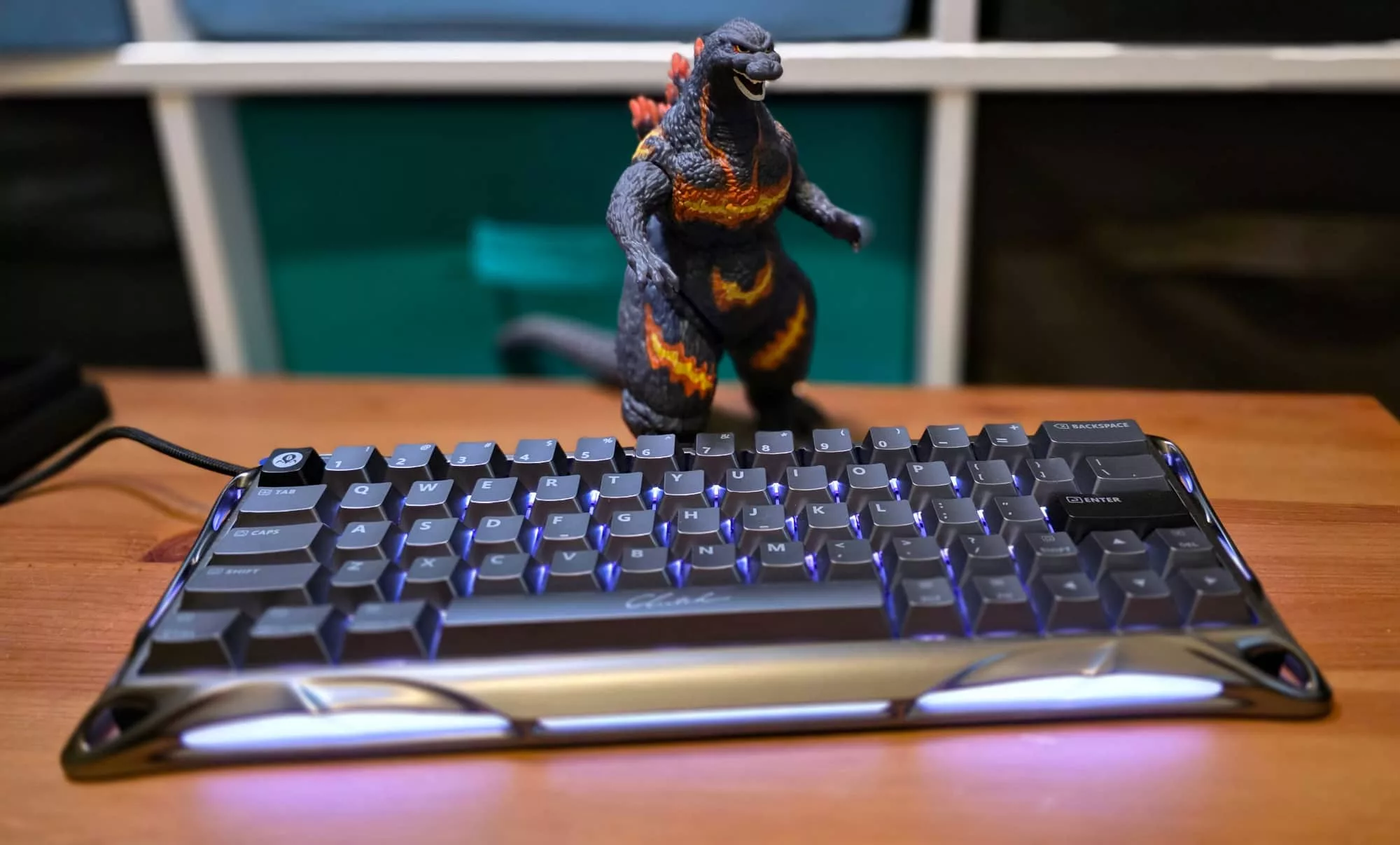 This is the smallest and pettiest complaint to make, but amidst the flowing, almost organic metal and pulsing lights of the keyboard, the way that the word “Clutch” has been printed just on the space bar looks discordant to my eyes.